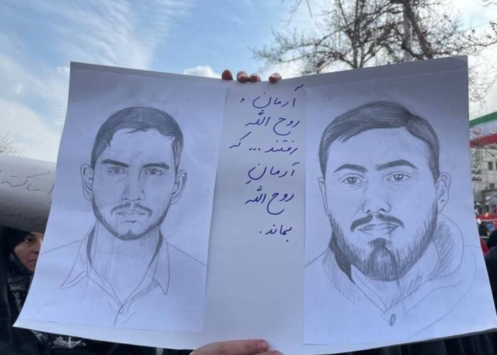 "آرمان و روحالله رفتند که آرمانِ روحالله بماند"؛ نوشته ای معنادار در جشن راهپیمایی ۲۲ بهمن