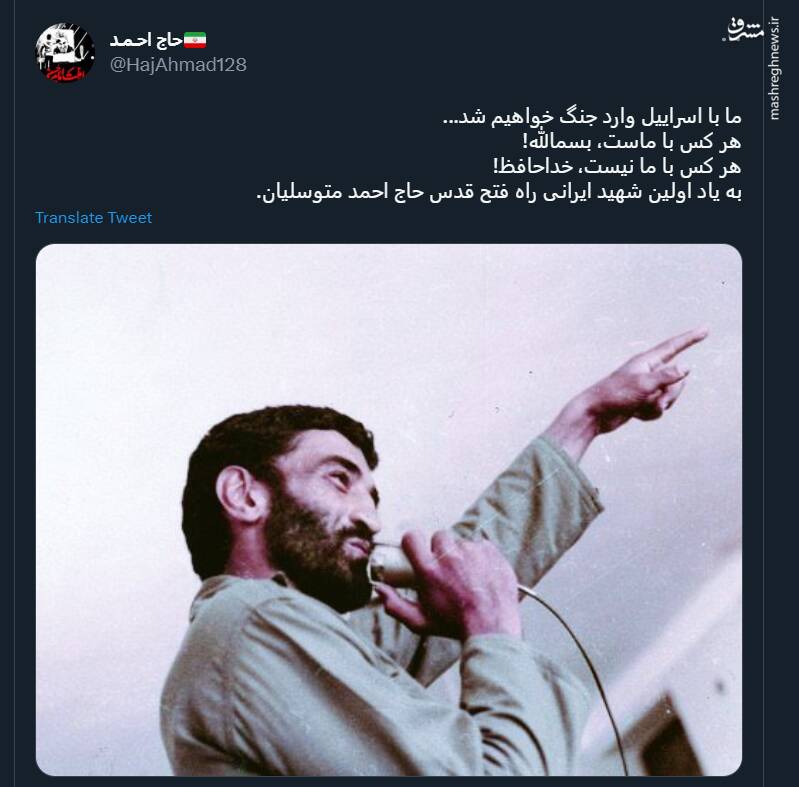 وی خاطرنشان کرد: شهید جاویدالاثر حاج احمد متوسلیان اولین شهید ایرانی در راه فتح قدس است و فتح‌های امروز جبهه مقاومت، محصول راهی است که او برای آزادی قدس شریف و رهایی مردم مظلوم فلسطین از یوغ سلطه و ستم اشغالگران صهیونیست و حامیان آنها باز کرد.