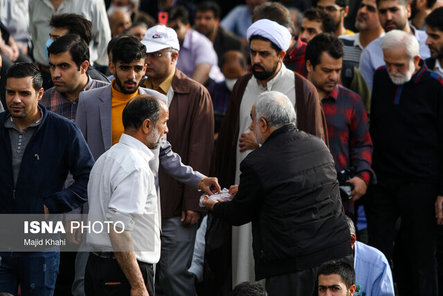 در پایان مراسم هم پکهای پذیرایی برای نمازگزاران در نظر گرفته شده بود که توزیع شد و صندوق هایی برای اینکه مردم زکات و کفاره فطریه خود را پرداختند کنند، به صورت سیار در تمام مسیرها بر پا شده بود.
