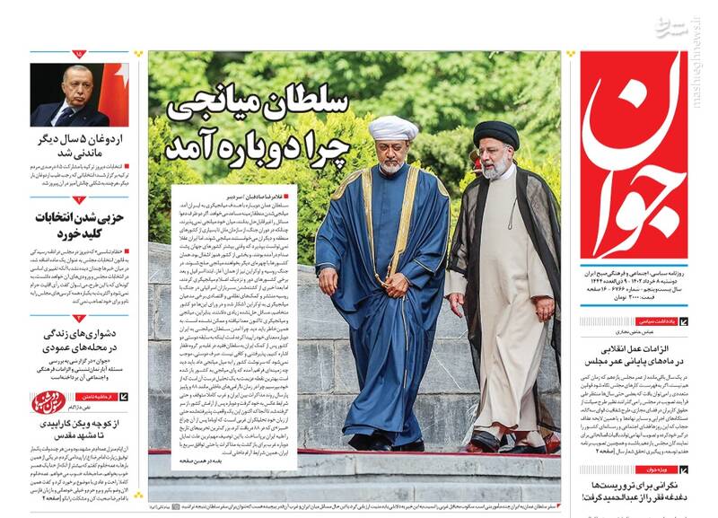 عکس/ صفحه نخست روزنامه‌های دوشنبه ۸ خرداد سلطان میانجی چرا دوباره آمد، آمریکا در صندوق ترکیه نبرد، عمان بالاتر از واسطه و پیام‌آور، نرخ بیکاری در ۲۳ استان تک‌رقمی شد، از تیترهای برگزیده روزنامه‌های دوشنبه ۸ خرداد ۱۴۰۲ است.