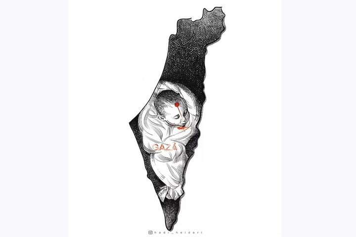 اثر «کودک کشی، بدون مرز» هادی حیدری هنرمند طراح و کارتونیست در واکنش به جنایت رژیم غاصب