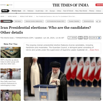 پوشش برگزاری انتخابات ریاست جمهوری ایران در تایمز آف ایندیا