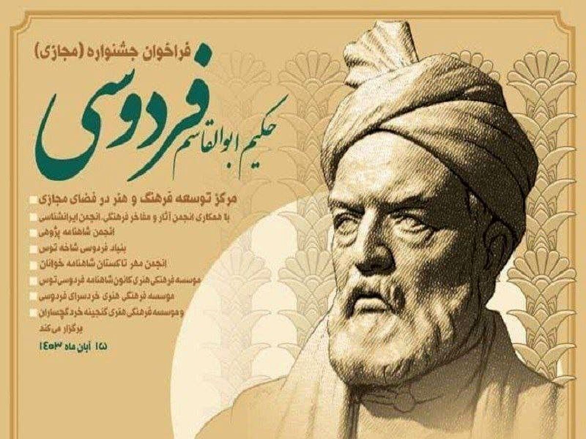 اولین جشنواره «حکیم ابوالقاسم فردوسی» در ۲ بخش کودکونوجوان و بزرگسالان و در ۴ رشته شاهنامه خوانی، نقالی، تصویرسازی، متون مکتوب برگزار خواهد شد. جوان آنلاین: مرکز توسعه فرهنگ و هنر در فضای مجازی وزارت فرهنگ و ارشاد اسلامی فراخوان جشنواره مجازی «حکیم ابوالقاسم فردوسی» را منتشر کرد.