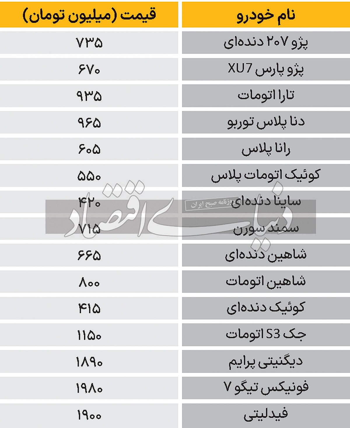 قیمت خودرو در بازار امروز ۲۹ مرداد/ جدول