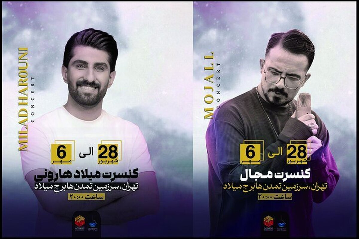 میلاد هارونی و مجال از خوانندگان نسل جدید هم زمان با ایام ولادت رسول اکرم (ص) و هفته وحدت از شامگاه چهارشنبه ۲۸ شهریور کنسرتهای رایگان خود را در سرزمین تمدنهای برج میلاد برگزار میکنند. جوان آنلاین: کنسرت رایگان میلاد هارونی و «مجال» به همراه ویژه برنامههای شاد و مفرح از ۲۸ شهریور تا ۶ مهر از ساعت ۲۰ برای مردم و بازدیدکنندگان سرزمین تمدنها در برج میلاد برگزار خواهد شد.