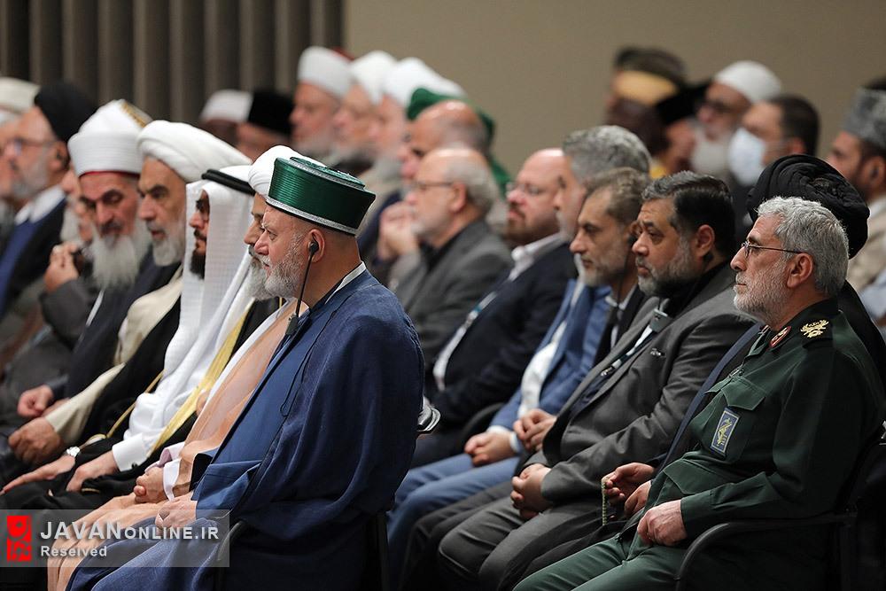 همزمان با خجسته سالروز میلاد پیامبر اعظم حضرت محمد صلیاللهعلیهوآلهوسلم و امام صادق علیهالسلام، جمعی از مسئولان نظام، سفرای کشورهای اسلامی و مهمانان سیوهشتمین کنفرانس وحدت صبح امروز (شنبه) با حضور در حسینیه امام خمینی(ره) با حضرت آیتالله خامنهای رهبر انقلاب اسلامی دیدار کردند.