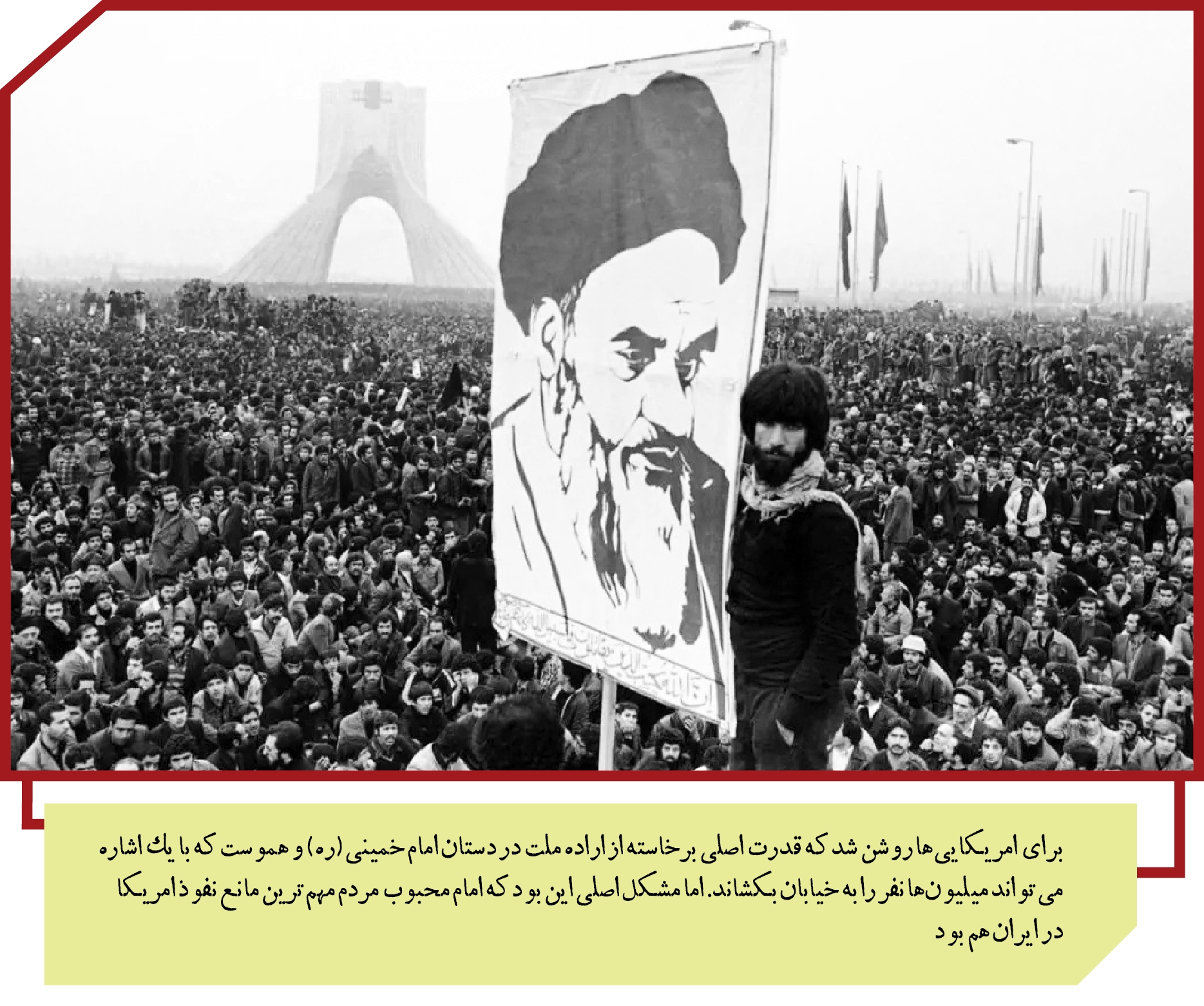 برای امریکاییها واضح بود که این قدرت امام ناشی از تکیه او بر مردم بود و از همین رو بود که توان بسیج کردن مردم را هم داشت. وزارت امور خارجه در واشینگتن در جمعبندیای خیلی محرمانه که در ۲۰ اوت ۱۹۷۹ [۲۹ مرداد ۱۳۵۸]برای سفارت ارسال کرده، آورده است: