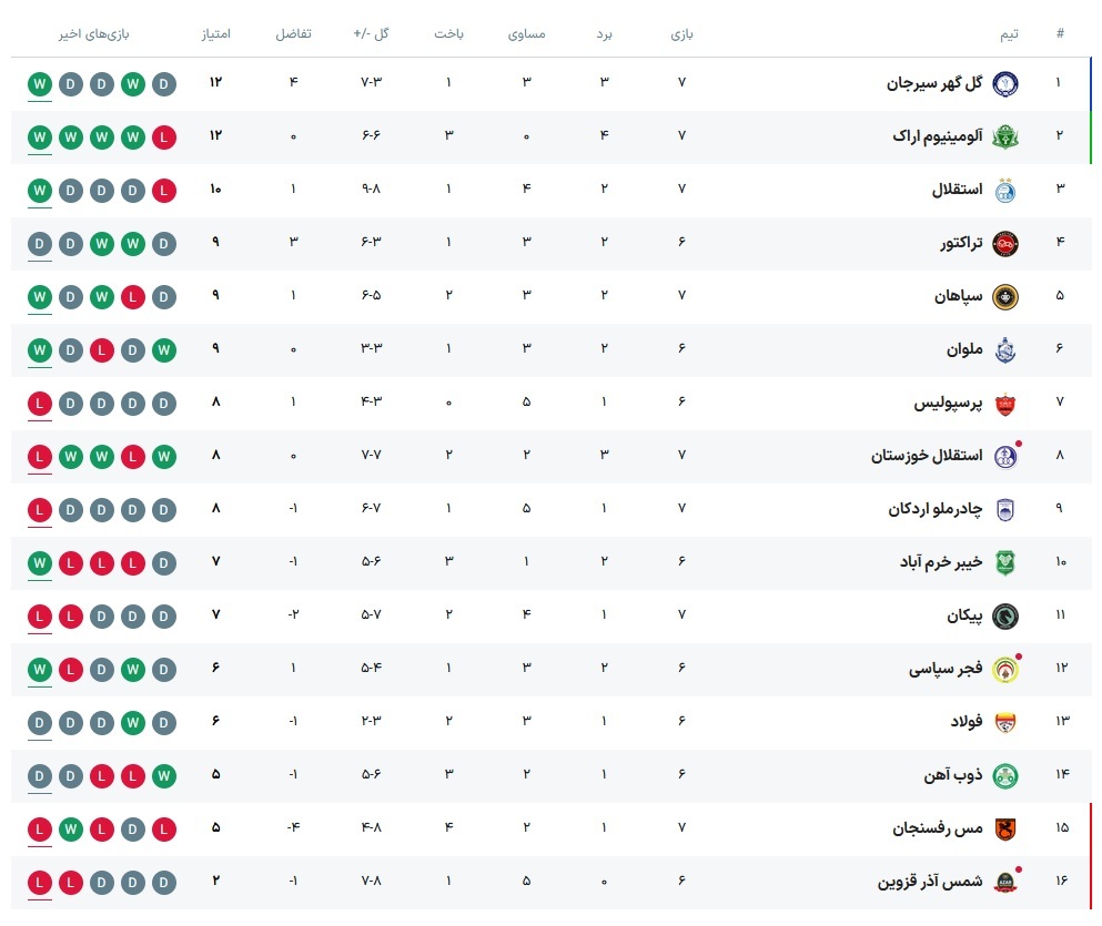 جوان آنلاین: هفته هفتم لیگ برتر با باخت پرسپولیس مقابل خیبر در یک بازی دراماتیک به پایان رسید تا جدول لیگ به شکل زیر در بیاید؛