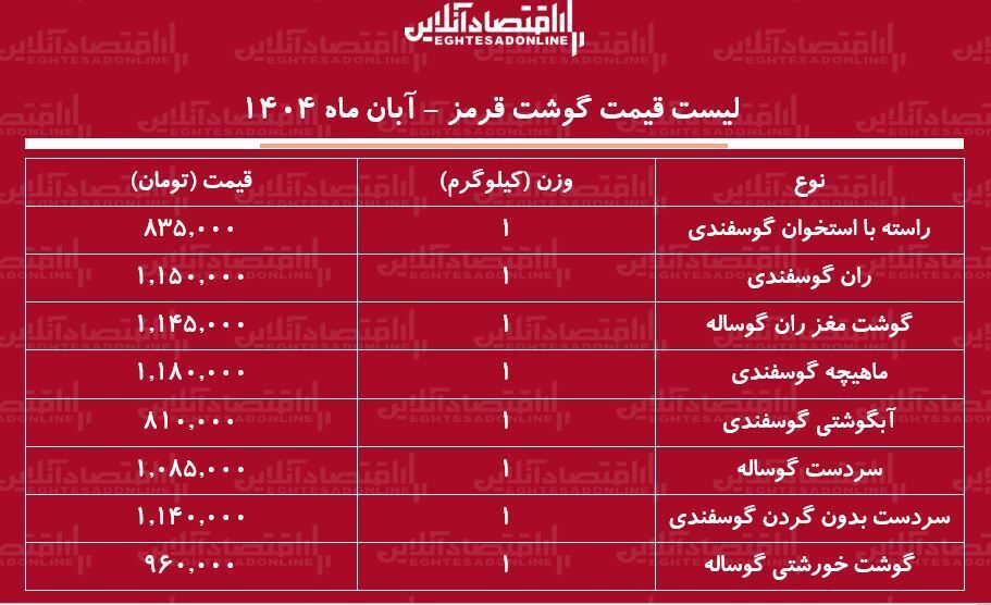 طبق جدیدترین بررسیها از بازار مواد پروتئینی قیمت اقلام مختلف گوشت قرمز به شرح زیر است: