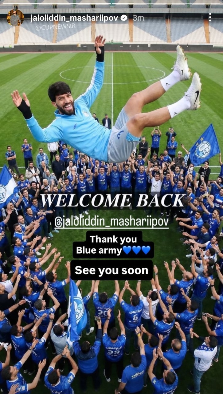 جوان آنلاین:جلالالدین ماشاریپوف حالا از یک خبر اداری و پزشکی فراتر رفته و رنگ و بوی احساسی گرفته است. هافبک ازبکستانی استقلال که ماهها بهدلیل مصدومیت و دوری از فهرست مسابقات، فصل سختی را پشت سر گذاشت، با انتشار استوری «WELCOME BACK» و جملههای «ممنون ارتش آبی» عملاً پیام روشنی به هواداران داد؛ او برگشته و آماده است.