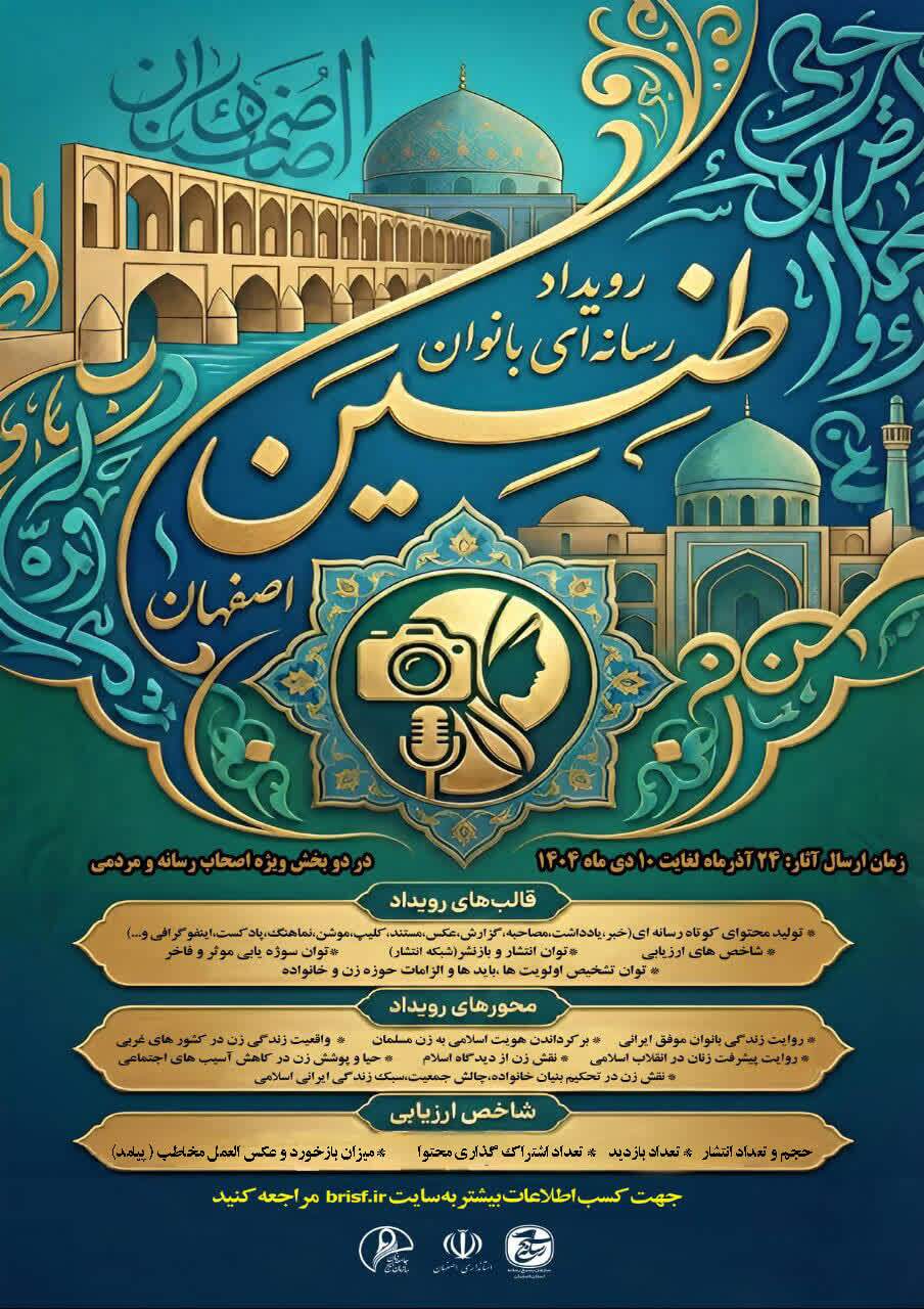 به گزارش خبرنگار جوان آنلاین رئیس سازمان بسیج رسانه استان اصفهان تصریح کرد: دومین رویداد رسانهای طنین در استان با محوریت "الگوی سوم زن مسلمان " در قالبهای کلیپ و گزارش، موشن گرافی، اینفوگرافی، پادکست، مستند، عکس، گزارش تحقیقی و تحلیلی، یادداشت و سرمقاله، گزارش خبری، مصاحبه و تیتر فعالیت خود را با دریافت آثار از تاریخ ۲۴ آذر ماه لغایت ۱۰ دی ماه ۱۴۰۴ در دو بخش ویژه اصحاب رسانه و بخش مردمی آغاز نموده است.