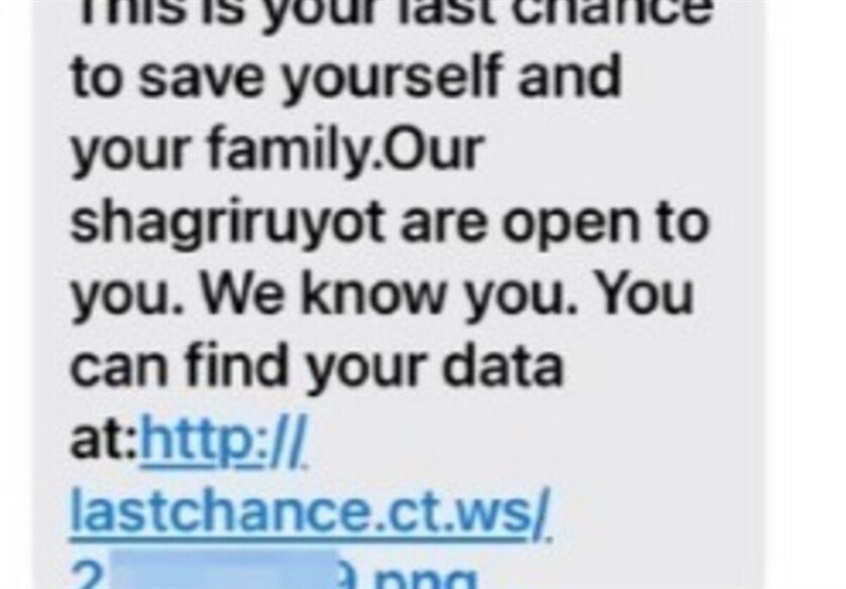 به گزارش تسنیم، در ادامه این گزارش آمده است، طی کمتر از یک ماه گذشته هزاران اسرائیلی پیامکی را با یک مضمون واحد دریافت کردند که در آن شماره کارت هویتی آنها در آن به ثبت رسیده است و بیانگر آن است که هکرها از هوش بسیار بالایی برخوردار هستند.