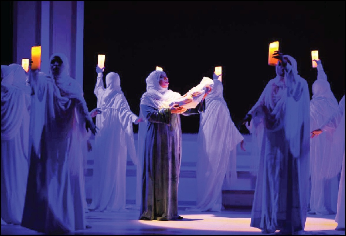در کنار موسیقی، حرکات نمایشی فرمی و گروهی نقش مهمی در انتقال مفاهیم نمایش ایفا میکنند. این حرکات که با دقت طراحی شدهاند، به بازنمایی آشوب، فشار روانی و تکرار رنج در بستر جنگ کمک میکنند و بهنوعی زبان بدن جمعی نمایش را میسازند. هماهنگی میان بازیگران در این بخشها، حس جمعی رنج و مقاومت را تقویت میکند و مخاطب را از سطح روایت فردی به تجربهای مشترک و فراگیر میکشاند. این انتخاب فرمی، باعث درگیر شدن بیشتر تماشاگر با حسوحال نمایش میشود و «برای هانا» را به اجرایی چندلایه و تأثیرگذار بدل میکند.