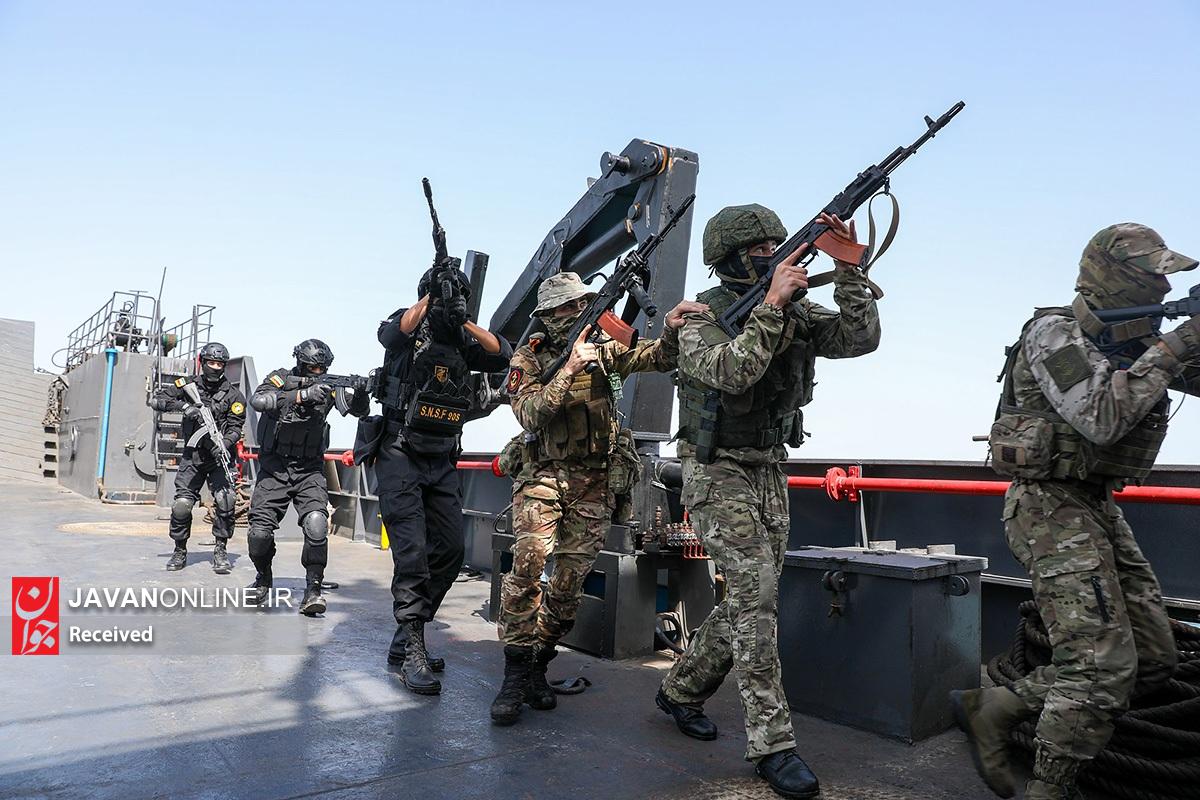 در ادامه برگزاری رزمایش مرکب دریایی نیروهای دریایی جمهوری اسلامی ایران و فدراسیون روسیه؛ یگانهای شناور و پروازی و تیمهای عملیات ویژه نیروی دریایی ارتش جمهوری اسلامی ایران، نیروی دریایی سپاه پاسداران انقلاب اسلامی و فدراسیون روسیه، عملیات آزادسازی کشتی ربوده شده را تمرین کردند.