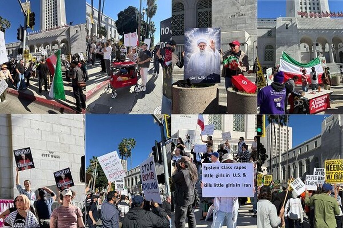 تجمع مخالفان جنگ مقابل شهرداری لس‌آنجلس صدها معترض آمریکایی، ایرانی و عرب‌زبان در اعتراض به جنگ و سیاست‌های دولت ترامپ گردهم آمدند.