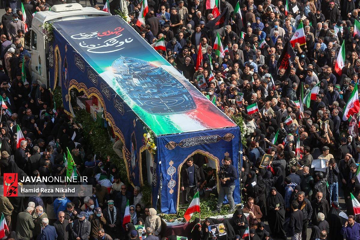 مراسم تشییع پیکر مطهر شهدای ناوشکن دنا همراه با پیکر مطهر شهید دکتر علی لاریجانی و سردار سرلشکر غلامرضا سلیمانی فرمانده بسیج مستضعفین با حضور باشکوه مردم مومن و انقلابی تهران از میدان انقلاب به سمت معراج الشهدای تهران برگزار شد.