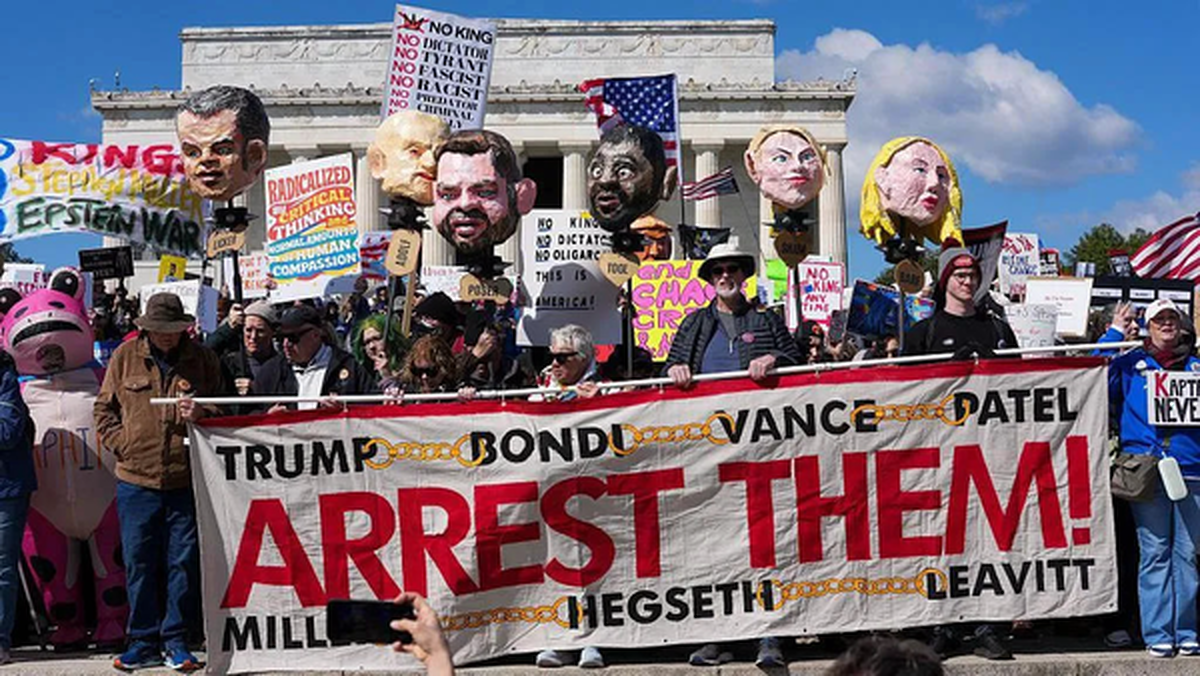 معترضان در خیابان اعلام کردند: «ترامپ میخواهد بهعنوان یک مستبد بر ما حکومت کند. » آنها آدمکهایی از ترامپ، جی دی ونس و دیگر مقامات دولت در دست داشتند و خواستار برکناری و دستگیریشان شدند. برخی معترضان نیز با شعار «رژیم چنج در خانه»، به خیابان آمدند.