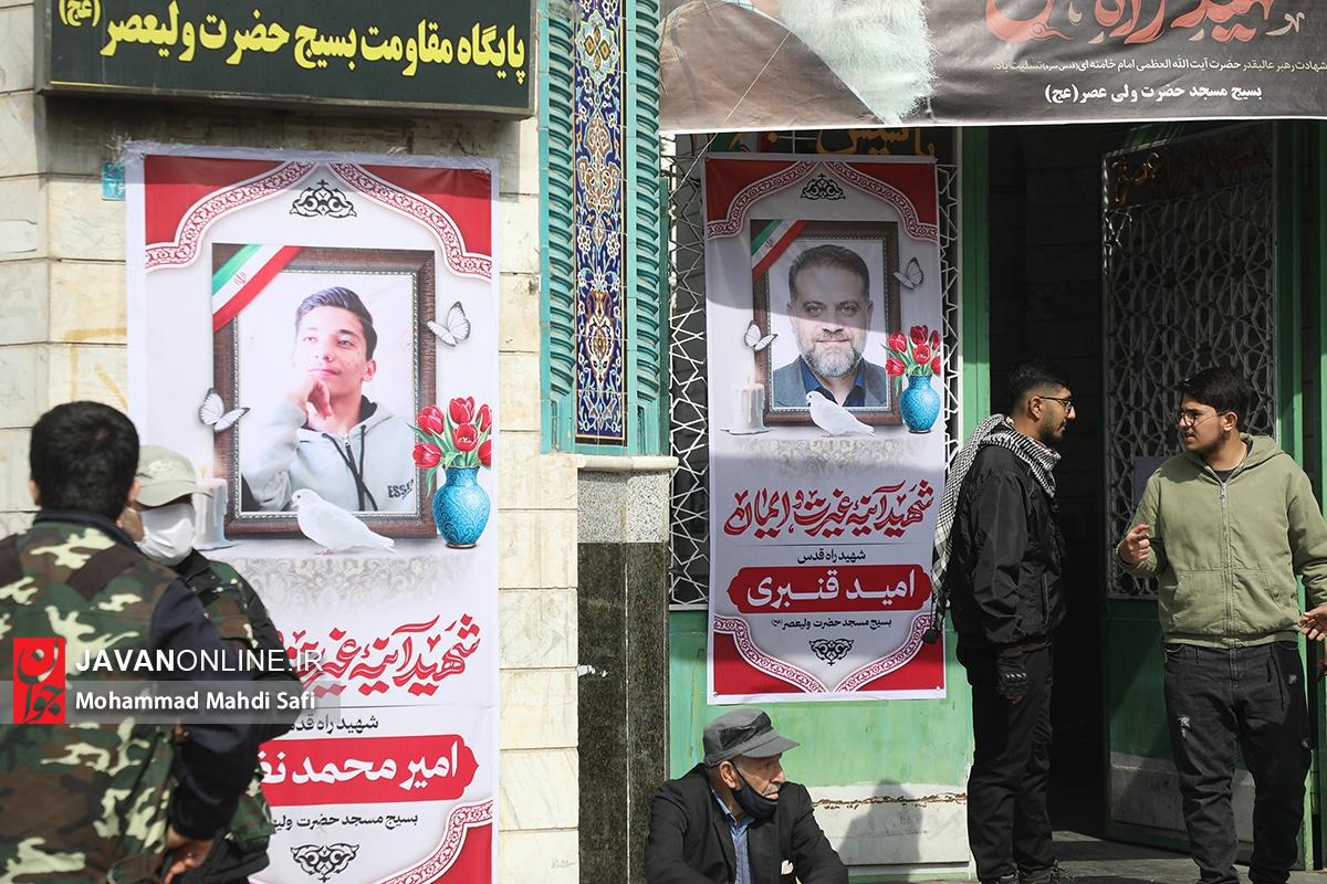 مراسم تشییع پیکر مطهر شهیدان جنگ رمضان، امیر محمد نظری و حسن کریمی از شهدای بسیج مسجد ولیعصر (عج) و محله بلوار ابوذر تهران با حضور اقشار مختلف مردم برگزار شد. شهید امیر محمد نظری ۱۷ ساله در جریان حمله دشمن آمریکایی - صهیونی به ایست بازرسی این مسجد به شهادت رسید.