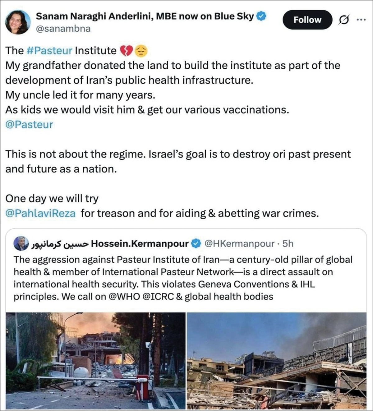«دلخراش، بیرحمانه، تنفرانگیز و به شدت غیرانسانی: متجاوزان آمریکایی-اسرائیلی به انستیتو پاستور ایران — قدیمیترین و معتبرترین مرکز پژوهش و بهداشت عمومی ایران و خاورمیانه — حمله کردند؛ مرکزی که در سال ۱۹۲۰ بر اساس توافق میان انستیتو پاستور پاریس و دولت ایران تأسیس شد.