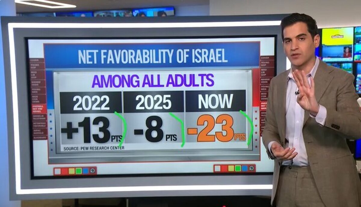در میان جمهوری‌خواهان زیر ۵۰ سال، حمایت از اسرائیل از ۲۸ امتیاز در سال ۲۰۲۲ به -۱۶ امتیاز امروز کاهش یافته است.