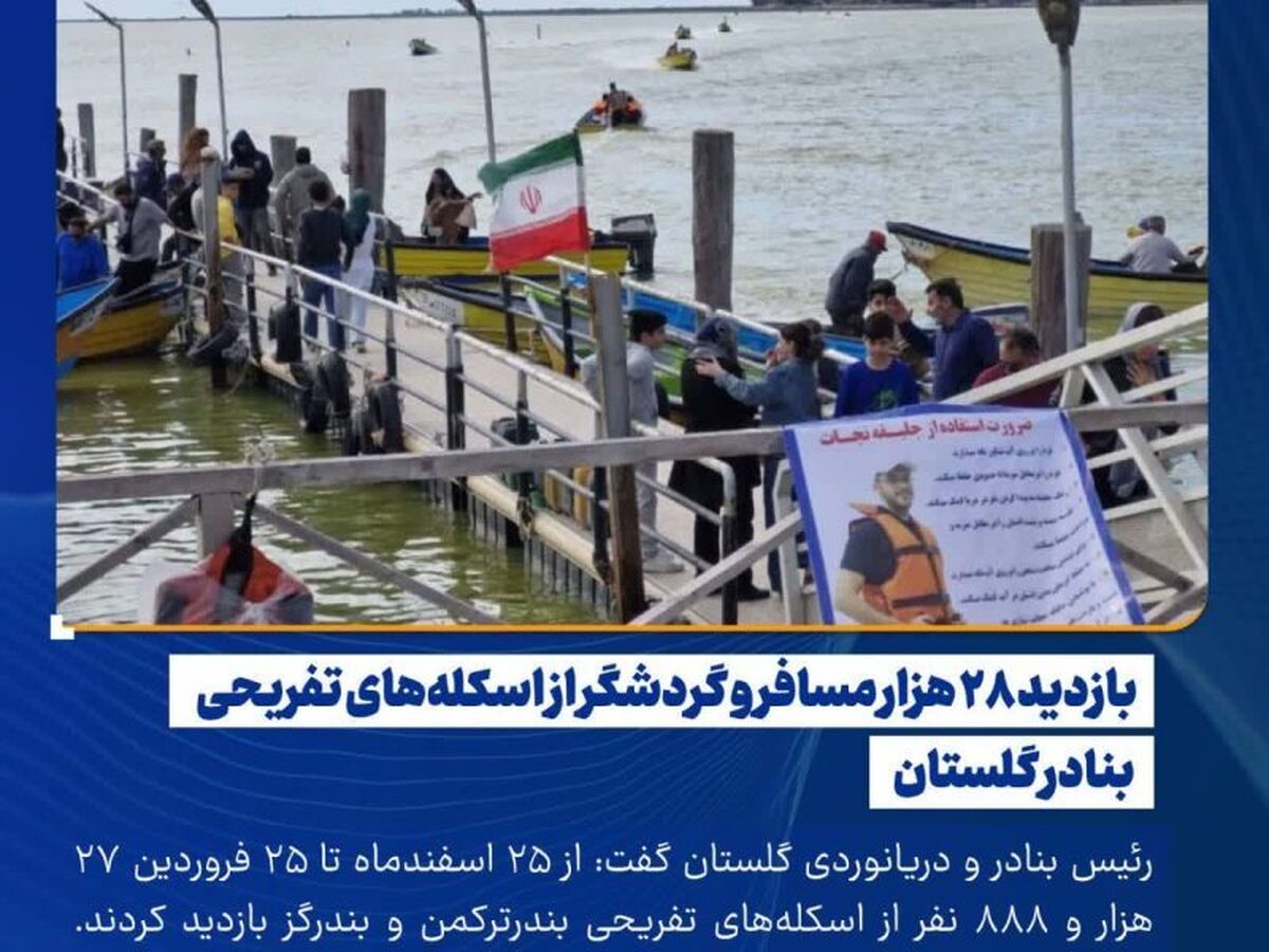به گزارش جوان آنلاین: سید محسن طیرانی، رئیس بنادر و دریانوردی گلستان با اعلام این خبر گفت: از ابتدای طرح ستاد نوروزی از ۲۵ اسفندماه تا ۲۵ فروردین ۲۷ هزار و ۸۸۸ نفر از اسکله‌های تفریحی بندر ترکمن و بندرگز بازدید کردند.
