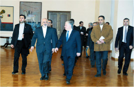 وزير امور خارجه تأكيد كرد ايران آمادگي داشته و دارد كه نگرانيها درباره برنامه هستهاي خود را رفع كنيم ولي اين را هم گفت كه همزمان توافق شده كه كليه تحريمها عليه ايران بايد برداشته شود. ادوارد نعلبنديان، وزير خارجه ارمنستان هم در ملاقات با ظريف ابراز اميدواري كرد كه مذاكرات جاري هستهاي بين ايران و 1+5 به نتيجه منجر شده و رضايت بخش باشد. خبرنگار اينترفكس روسيه نيز از ظريف درباره مذاكرات اخير وزراي دفاع ايران و روسيه سؤال كرد كه وي گفت: خوشحاليم كه با اين مذاكرات زمينههاي همكاري گستردهتر بين دو كشور فراهم شده و در مسير حل موضوع تحويل سامانه موشكي اس300 به ايران گفتوگوهايي صورت گرفته كه اميدواريم هر چه سريعتر به راه حل بينجامد. حتماً جمهوري اسلامي علاقه دارد كه اين موضوع از طريق گفتوگو و روابط دو جانبه حل و فصل شود. ديروز مهدي صناعي سفير ايران در روسيه نيز در گفت و گو با ريانوستي گفت كه ايران از روسيه انتظار و توقع دارد كه به قرارداد فروش سامانه اس 300 احترام بگذارد.