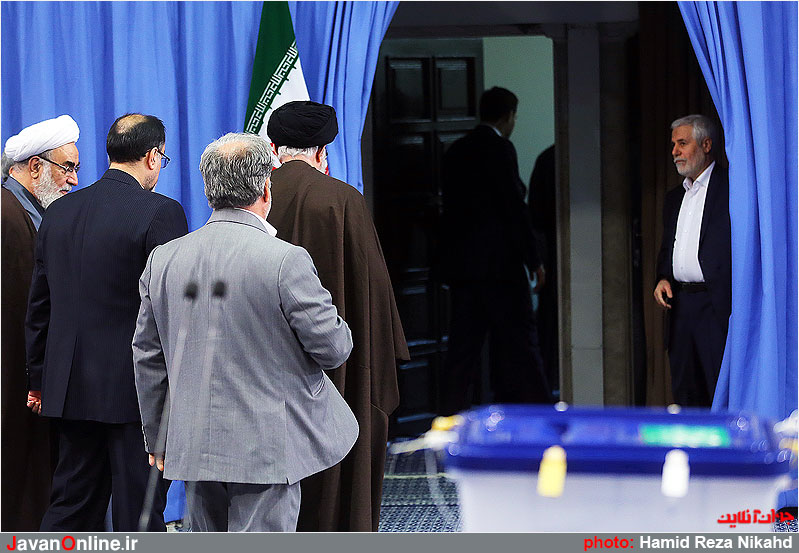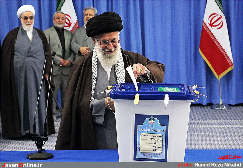حضرت آیت الله خامنه ای رهبر معظم انقلاب اسلامی در اولین دقایق آغاز رأیگیری دهمین دوره انتخابات مجلس شورای اسلامی و پنجمین دوره انتخابات مجلس خبرگان رهبری با حضور در محل صندوق سیار 110 در حسینیه امام خمینی (ره)، آرای خود را به صندوق انداختند.