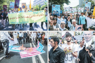 - راهپيمايان تهراني در حالي كه شعارهاي مرگ بر اسرائيل و مرگ بر امريكا سر مي‌دادند پرچم امريكا و اسرائيل را در ميدان فردوسي تهران آتش زدند.