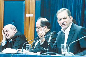 جهانگيري گفت: «بنابر اعلام نماينده ولي فقيه در خوزستان و مسئولان ارشد اين استان ظاهراً نظام بانكي در خوزستان به تعهدات خود عمل نكرده و مدير بانك مركزي با حضور وزير اقتصاد قرار بود جلسهاي را در استان خوزستان برگزار كنند. در ارتباط با آب و فاضلاب خوزستان مصوبات خوبي داشتيم، حتي در شوراي اقتصاد مصوباتي را به عنوان استفاده وزارت نيرو از منابع خارجي براي اجراي پروژههاي اين بخش در استان داشتيم.»