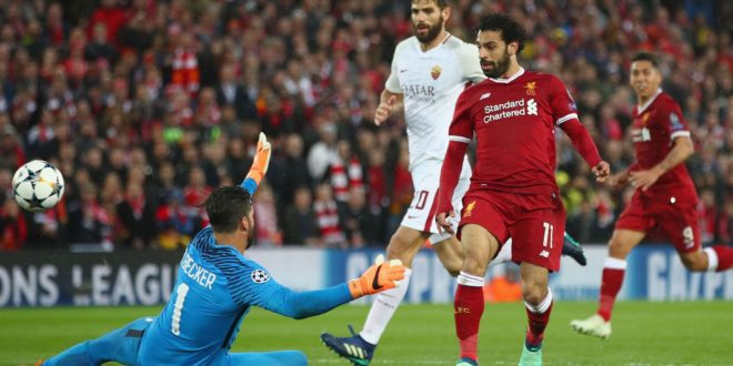 اما دیشب لیورپول در دیدار رفت مقابل رم با درخشش محمد صلاح به پیروزی رسید تا گام بلندی را برای حضور در مسابقه فینال بردارد. در این بازی لیورپول با ۵ گل به برتری رسید. رم از همان دقایق اول بازی را هجومی آغاز کرد و در حالی که بی وقفه حملات زیادی را روی دروازه رم انجام می داد اما دقیقه ۱۹ شوت ناگهانی و سهمگین کولاروف به تیر افقی اصابت کرد تا میزبان با خوش شانسی دروازه خود را بسته ببیند. در ادامه حملات ادامه داشت تا این که مانه در دقیقه ۲۹ با دروازه بان حریف تک به تک شد که با بی دقیتی به بیرون زد.