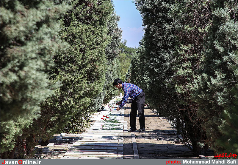 همزمان با روز بزرگداشت شهدا در هفته دفاع مقدس قبور مطهر شهدای بهشت زهرا(س) غبارروبی و گلباران شد.
