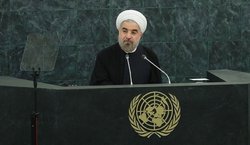 روحانی به تحریمهای بی رحمانه امریکا اشاره کرد و گفت: من از کشوری میآیم که از یکسال و نیم پیش، در برابر بیرحمانهترین تروریسم اقتصادی ایستادگی و از حق استقلال و توسعه علمی و فناوری خود دفاع کرده است. دولت امریکا با اعمال تحریمهای فرامرزی و تهدید دیگر ملتها، تلاش کرده ایران را از مزایای حضور در اقتصاد جهانی محروم کند و با سوء استفاده از نظام بانکی، به راهزنی بینالمللی دست زده است.