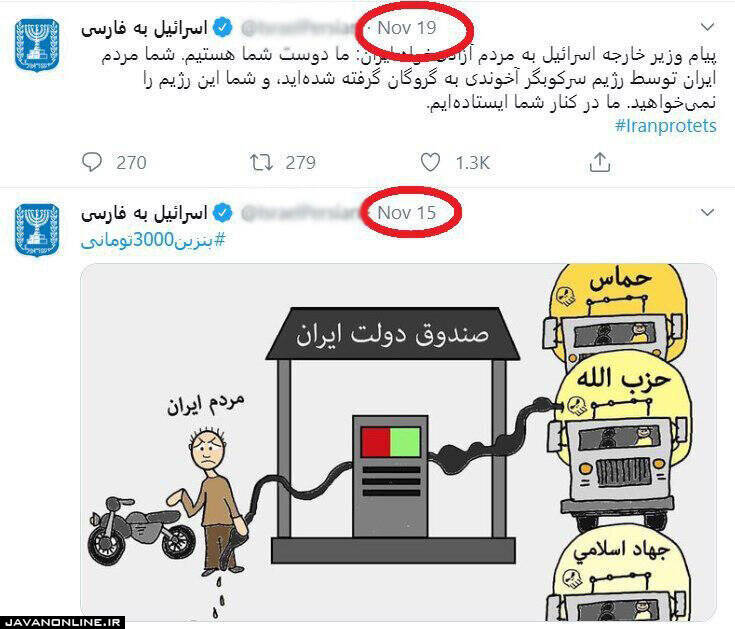 برخی از این حسابهای کاربری اتفاقا عنوان رسمی را هم یدک میکشند! از جمله حساب کاربری «اسرائیل به فارسی» که طی یک هفته و روزهای آشوب در ایران فعال نبوده است، این صفحه که با عنوان «صفحه رسمی وزارت امور خارجه اسرائیل» فعالیت میکند، با توجه به کمکار شدن این شائبه را به وجود میآورد که آیا هم ادمینها و هم سازمانی که آن را مدیریت میکند، احتمالا دارد در ایران باشند؟