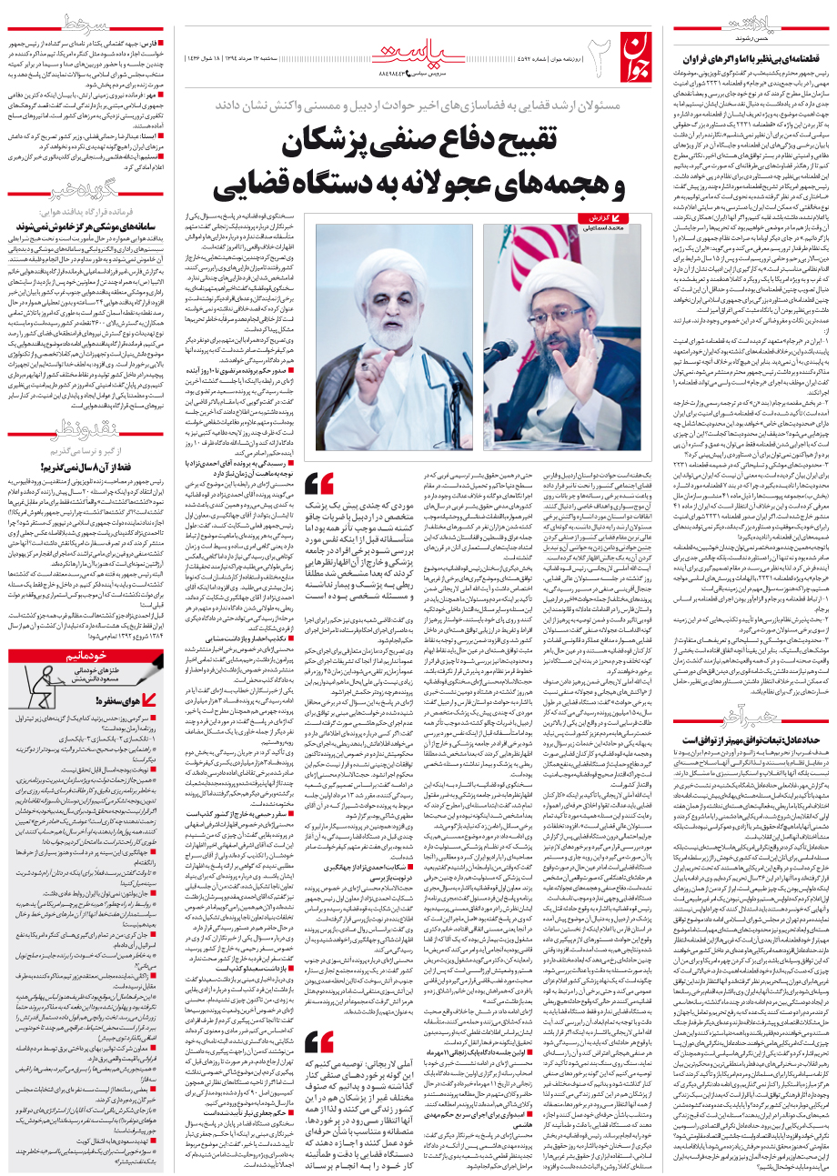 چهارشنبه ۲۶ فروردين ۱۴۰۵ | روزنامه جوان