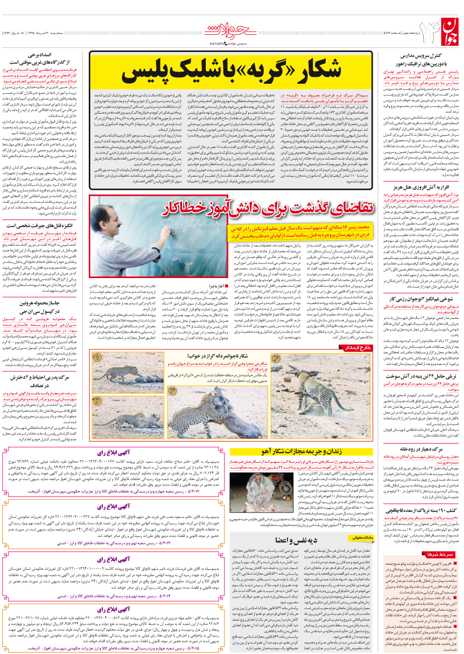 روزنامه جوان - سهشنبه ۱۳ مرداد ۱۳۹۴ - شماره ۴۵۹۲