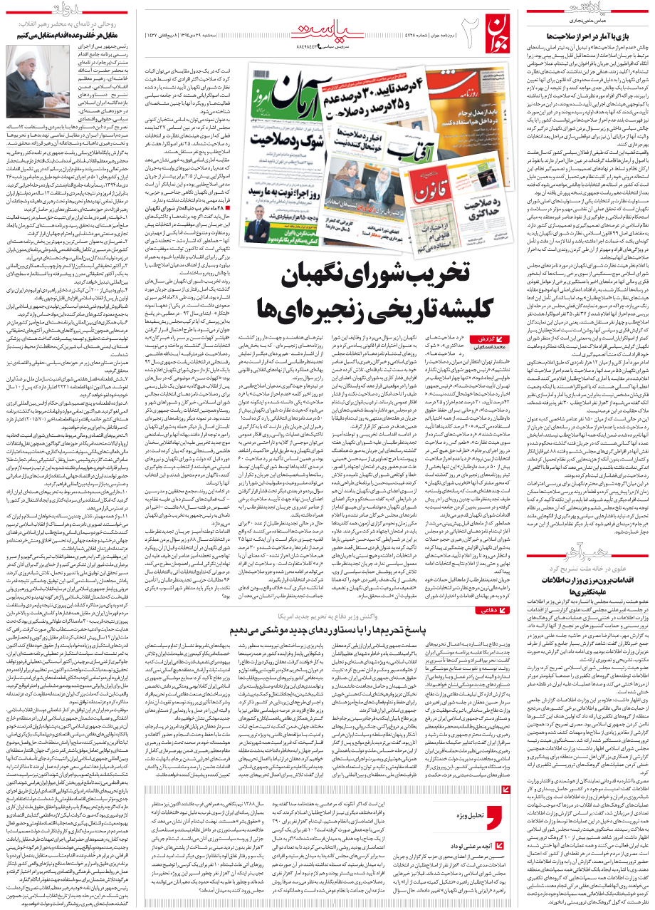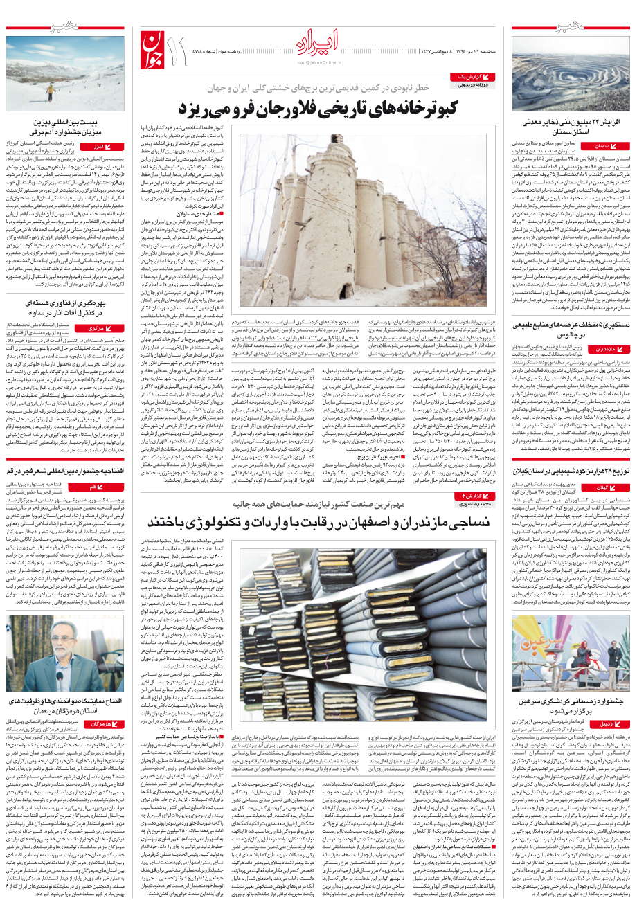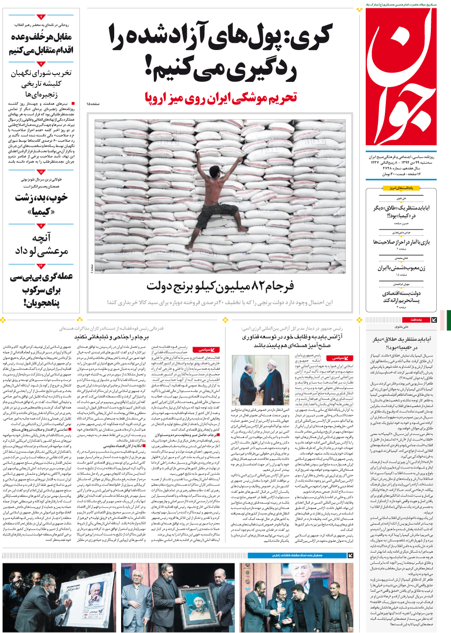روزنامه جوان - سهشنبه ۲۹ دی ۱۳۹۴ - شماره ۴۷۲۸