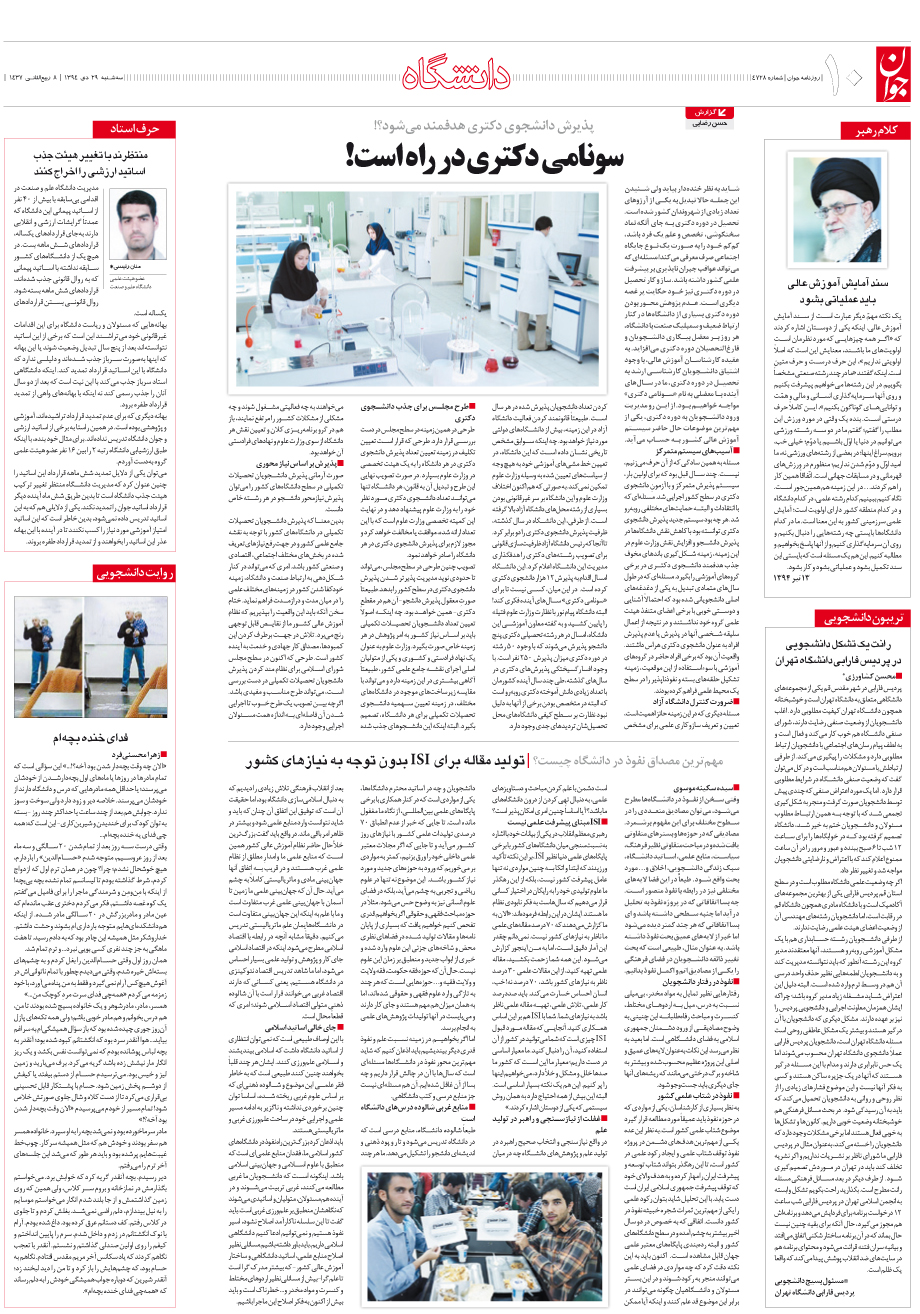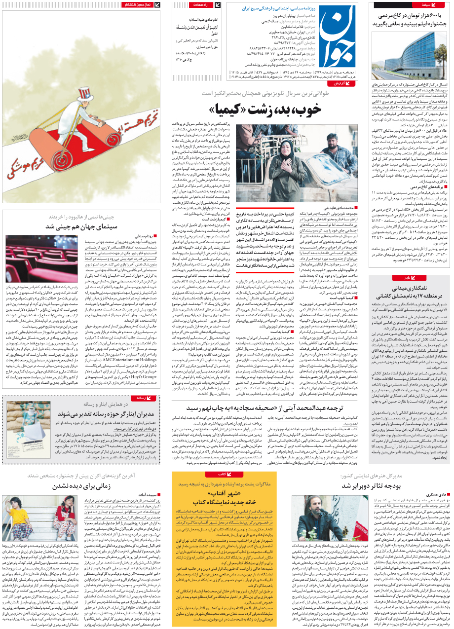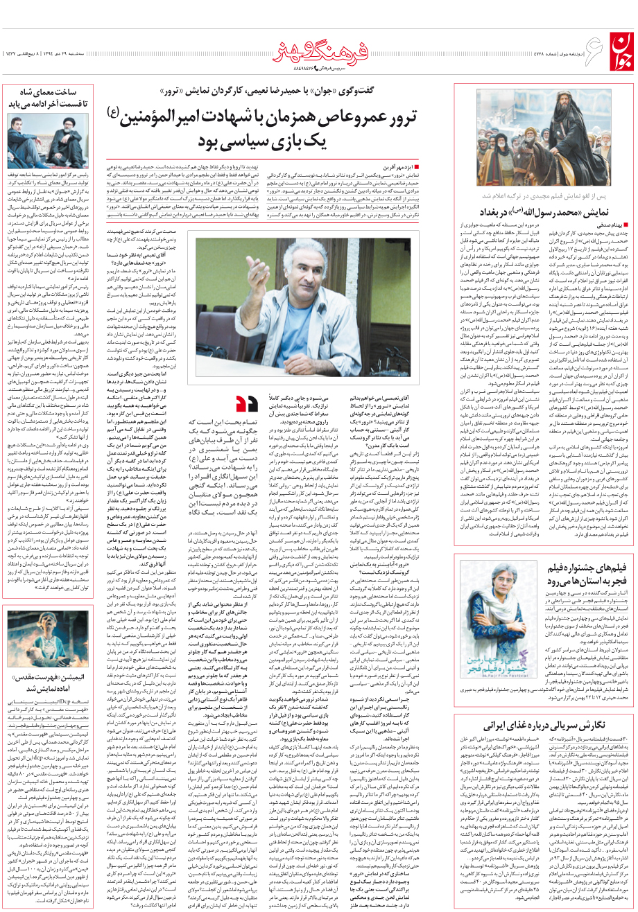 روزنامه جوان - سهشنبه ۲۹ دی ۱۳۹۴ - شماره ۴۷۲۸
