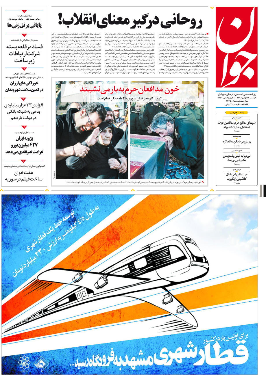 روزنامه جوان - دوشنبه ۱۹ بهمن ۱۳۹۴ - شماره ۴۷۴۵