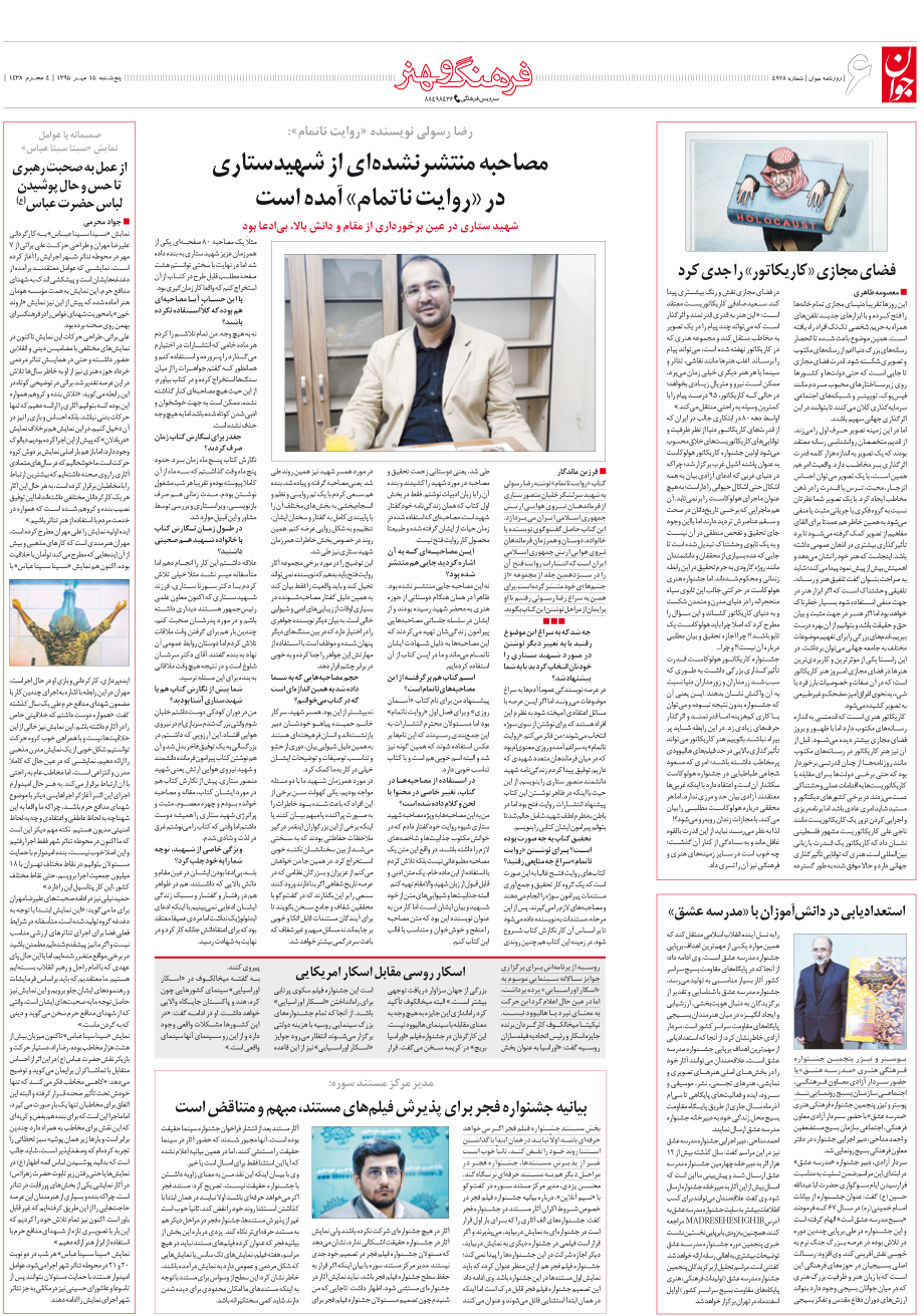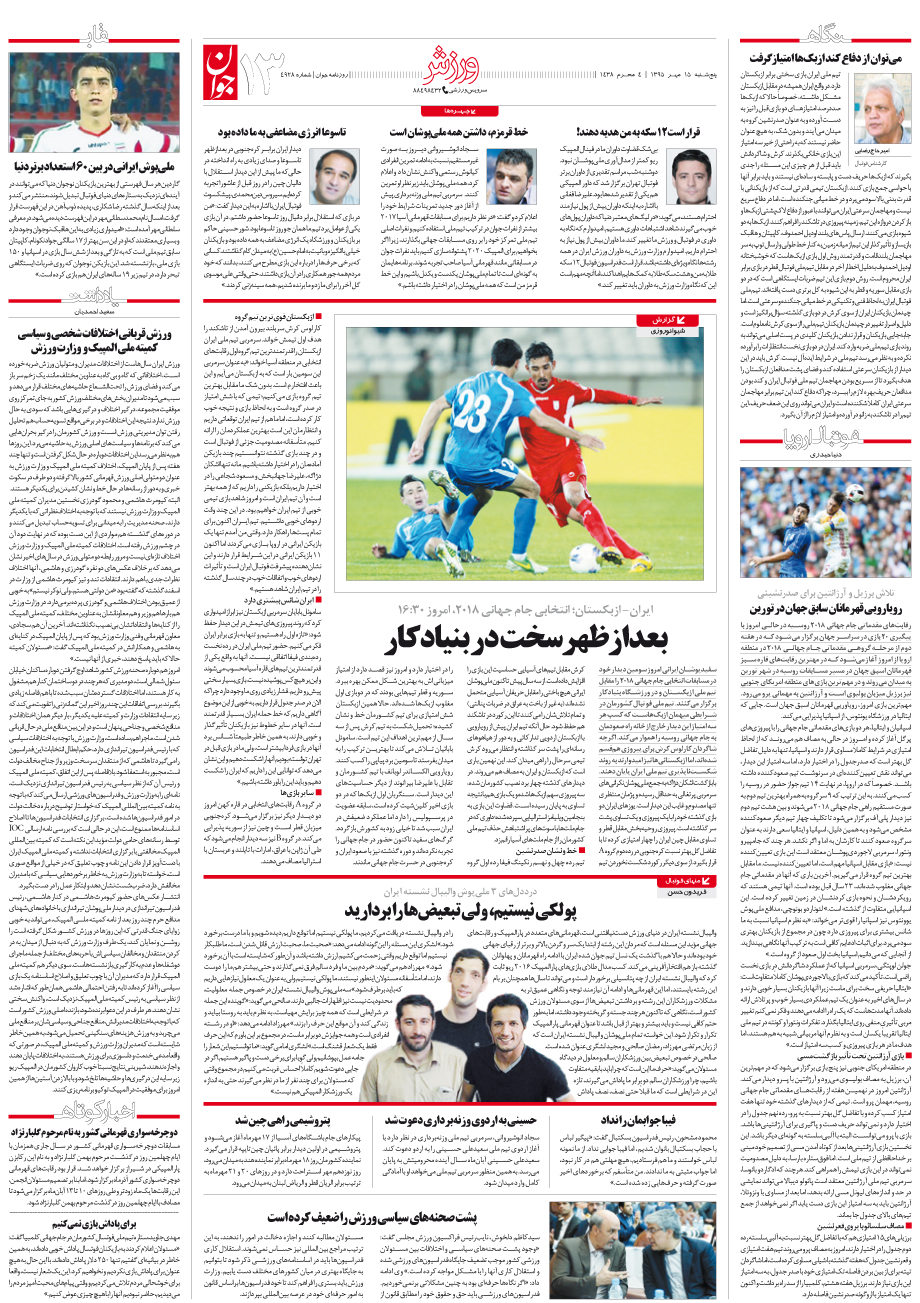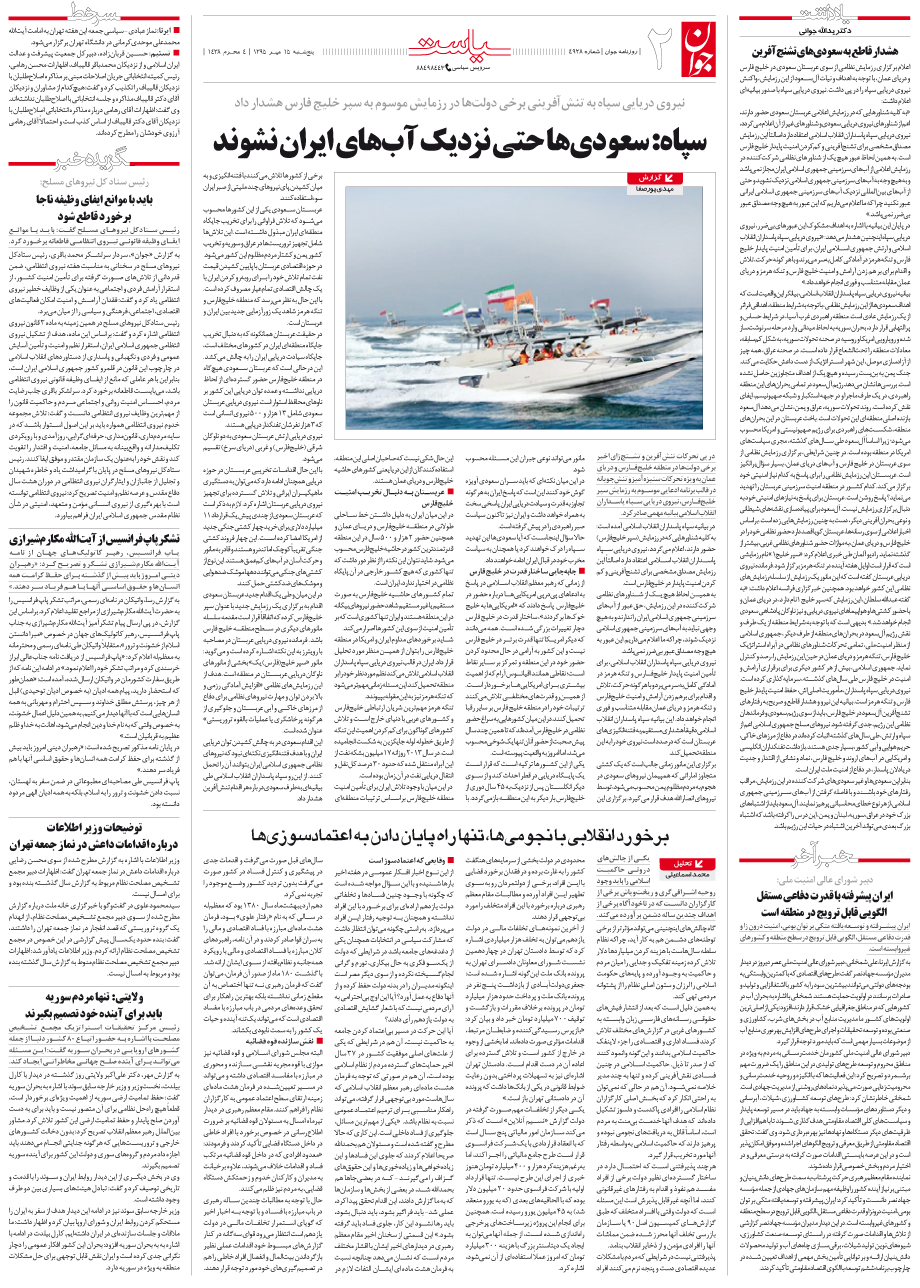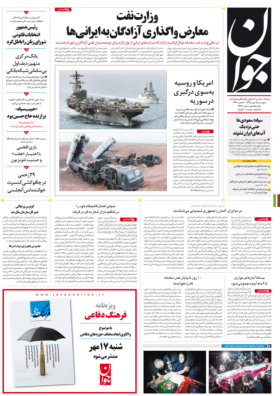 روزنامه جوان - پنجشنبه ۱۵ مهر ۱۳۹۵ - شماره ۴۹۲۸