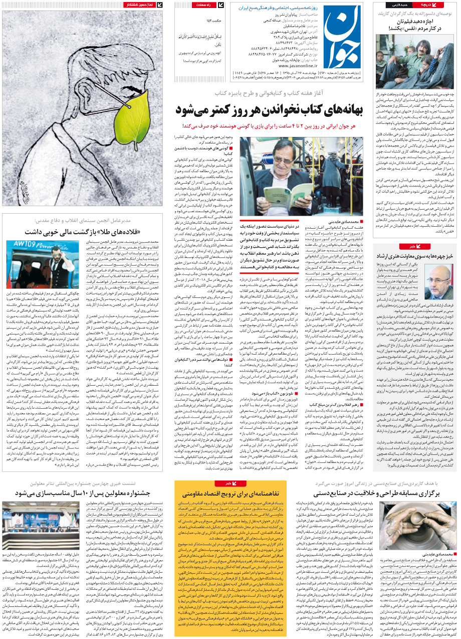 روزنامه جوان - چهارشنبه ۲۶ آبان ۱۳۹۵ - شماره ۴۹۶۰