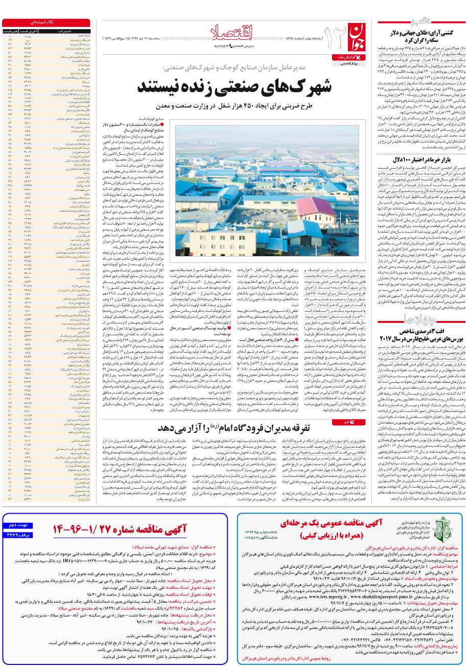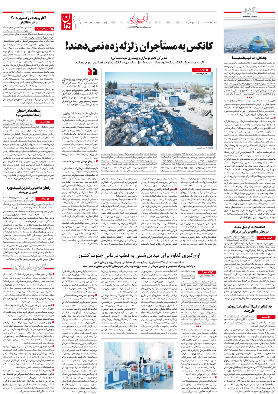روزنامه جوان - سهشنبه ۱۲ دی ۱۳۹۶ - شماره ۵۲۷۵