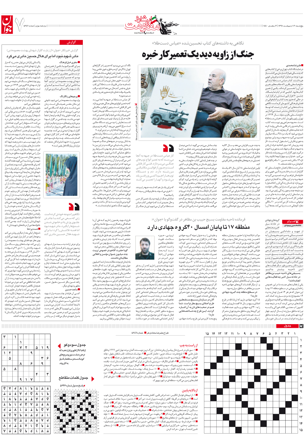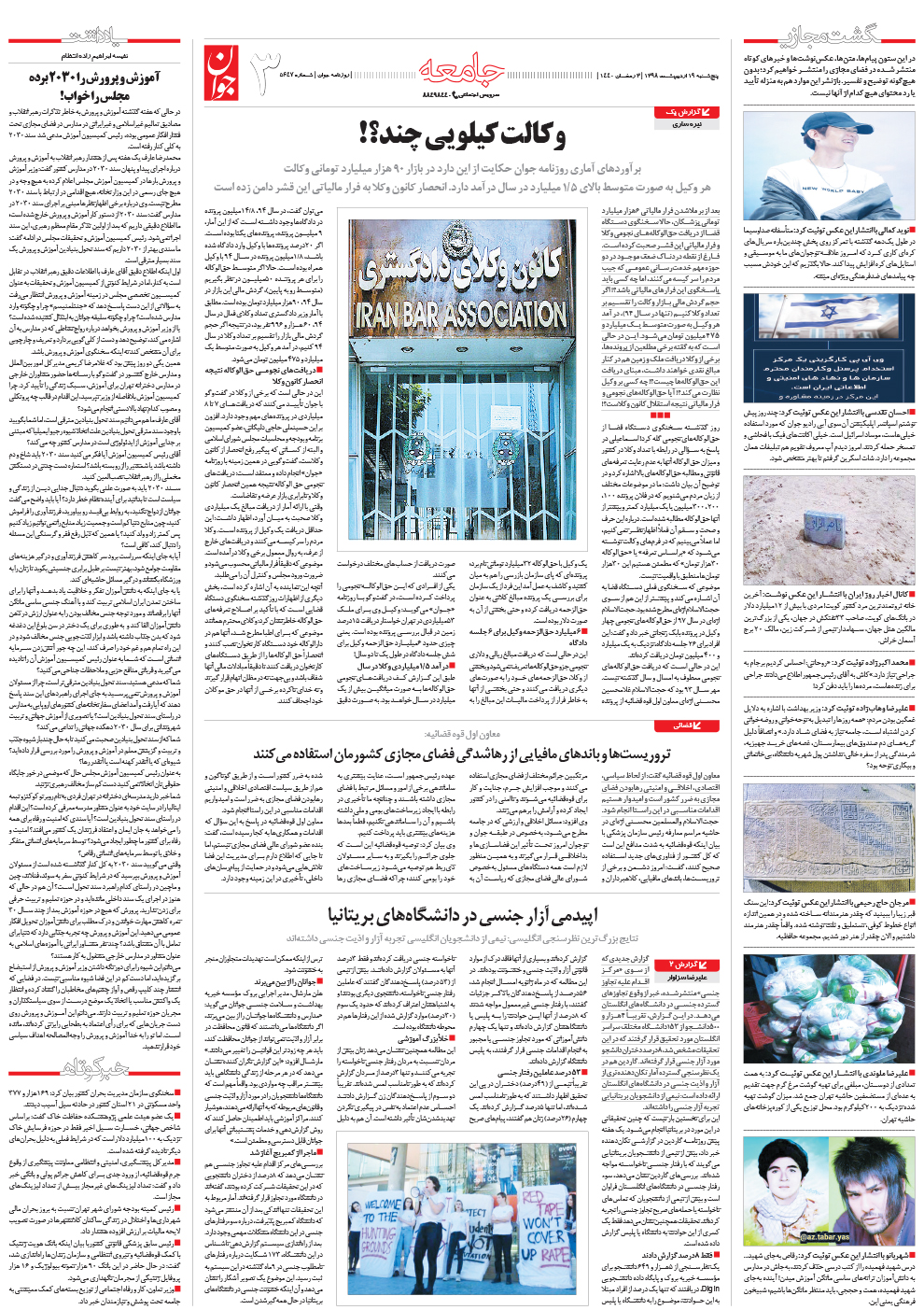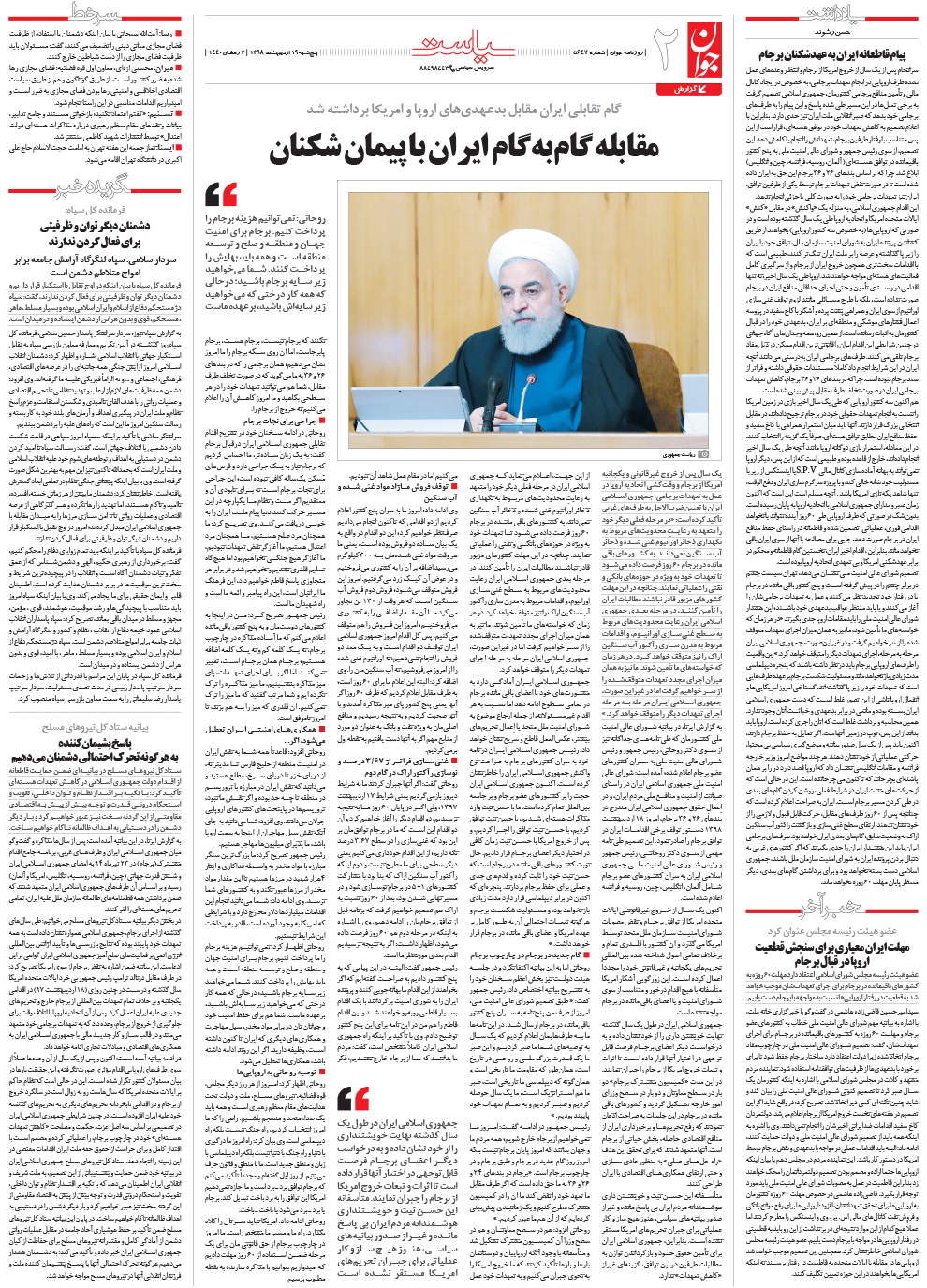 روزنامه جوان - پنجشنبه ۱۹ ارديبهشت ۱۳۹۸ - شماره ۵۶۴۷