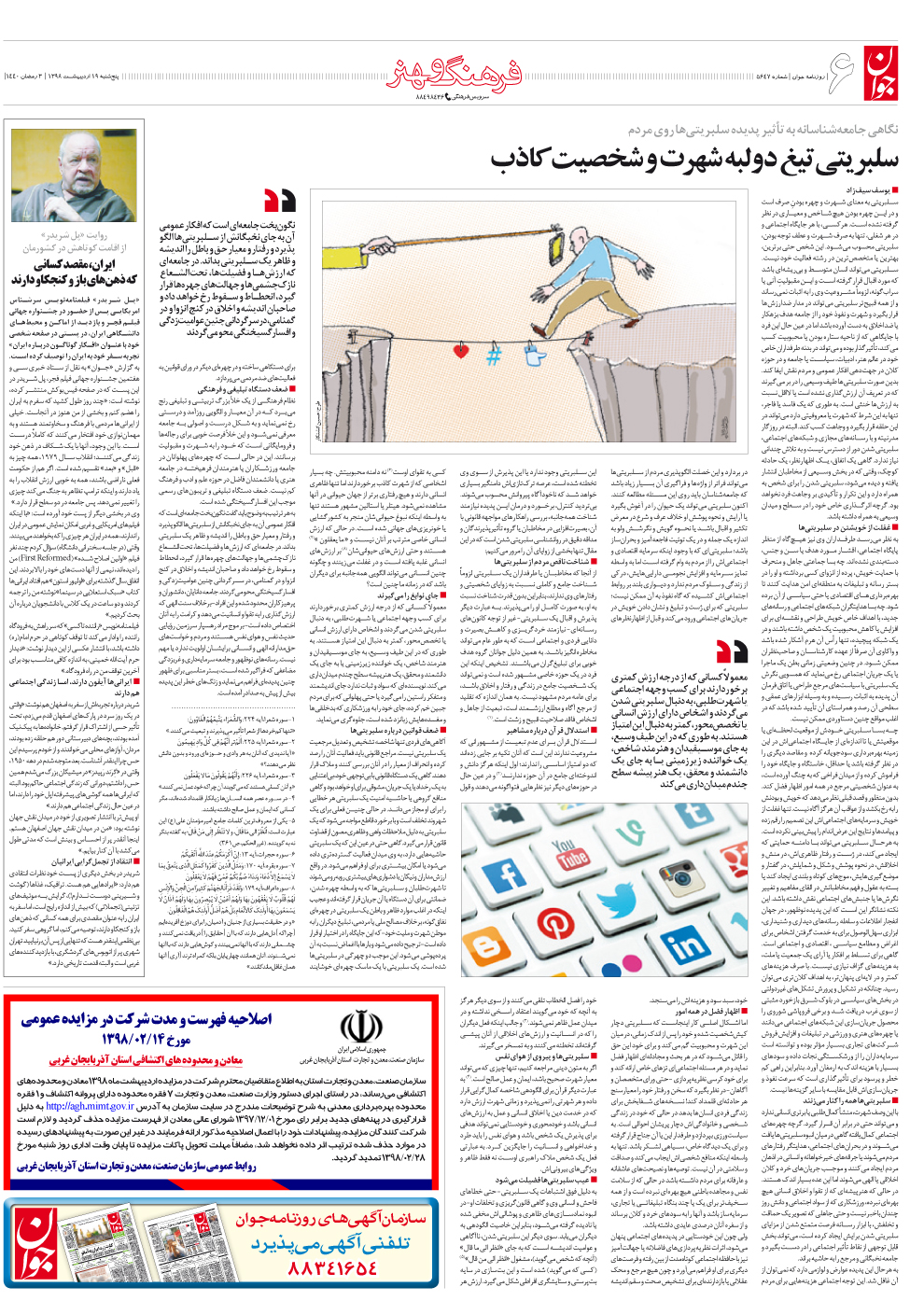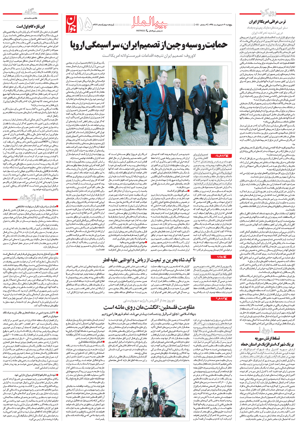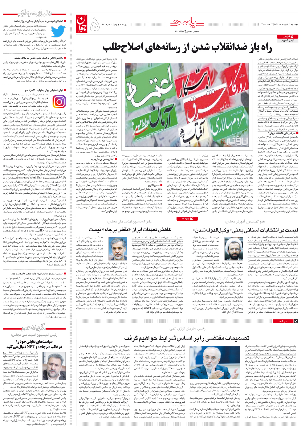 روزنامه جوان - پنجشنبه ۱۹ ارديبهشت ۱۳۹۸ - شماره ۵۶۴۷