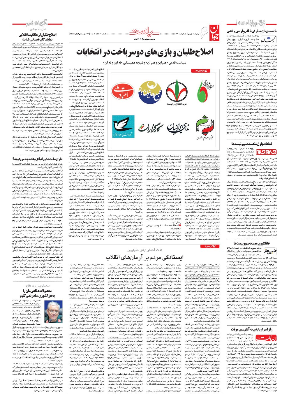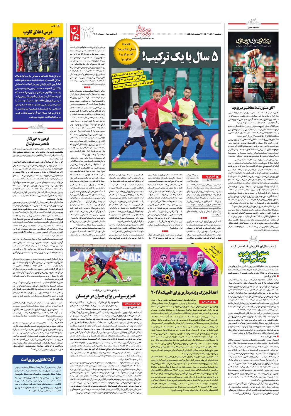 روزنامه جوان - دوشنبه ۰۶ آذر ۱۴۰۲ - شماره ۶۹۰۸