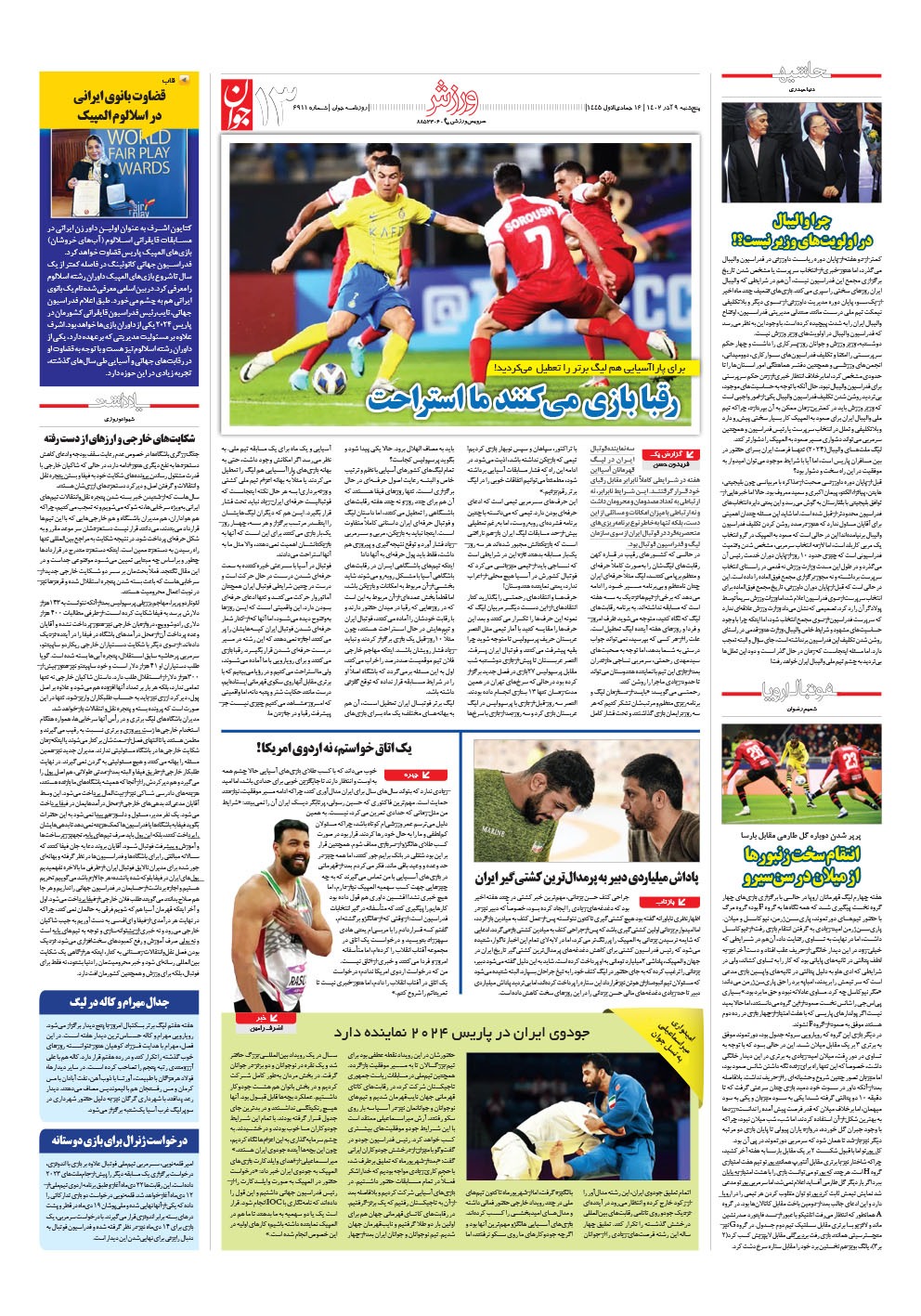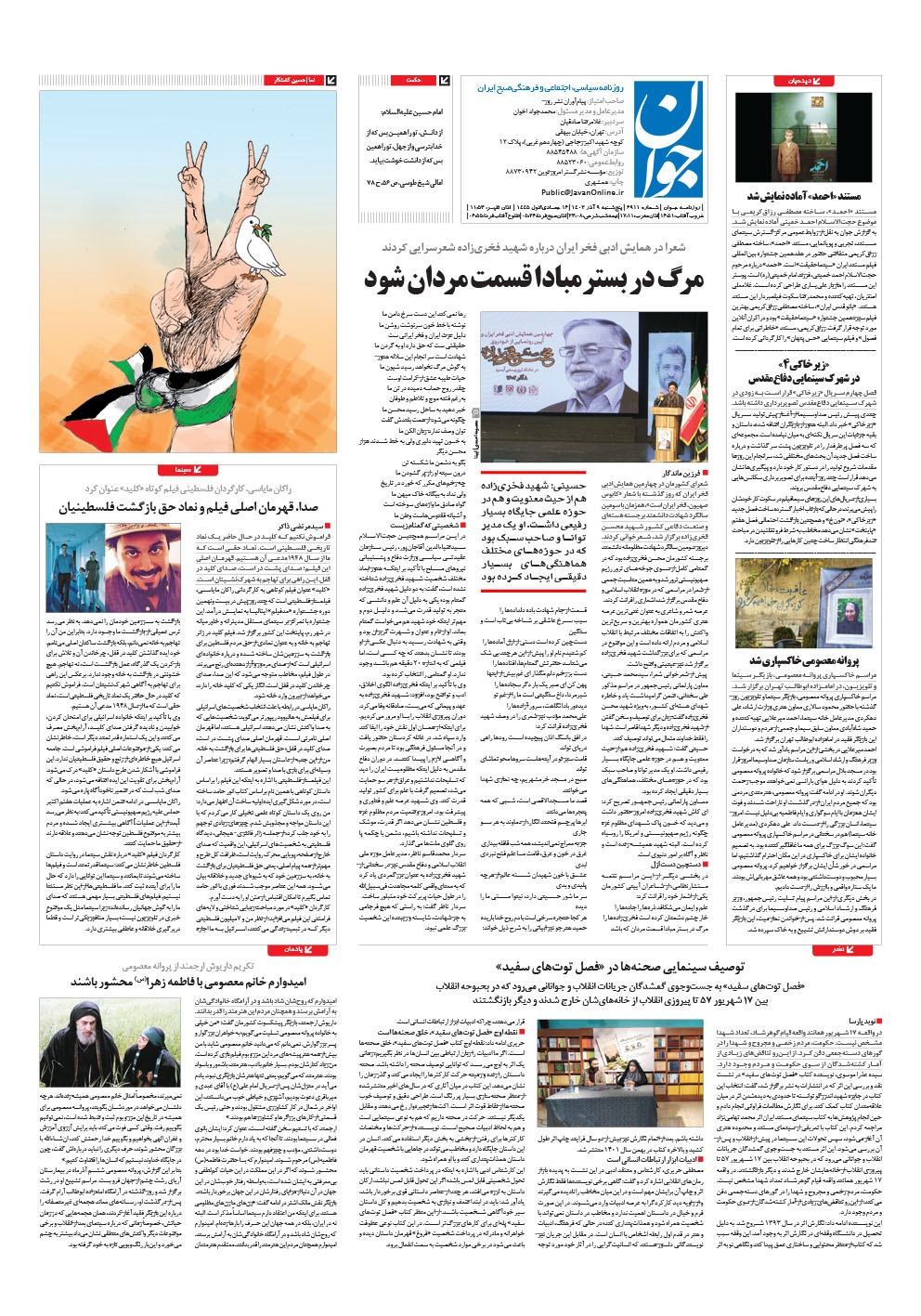 روزنامه جوان - پنجشنبه ۰۹ آذر ۱۴۰۲ - شماره ۶۹۱۱