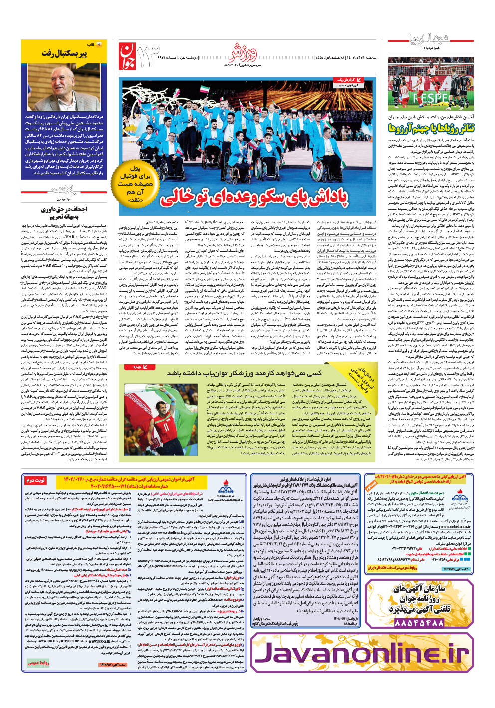 روزنامه جوان - سه‌شنبه ۲۱ آذر ۱۴۰۲ - شماره ۶۹۲۱