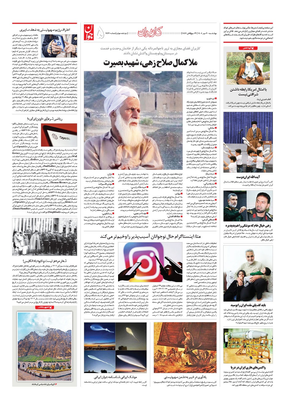 روزنامه جوان - چهارشنبه ۳۰ مهر ۱۴۰۴ - شماره ۷۴۳۱
