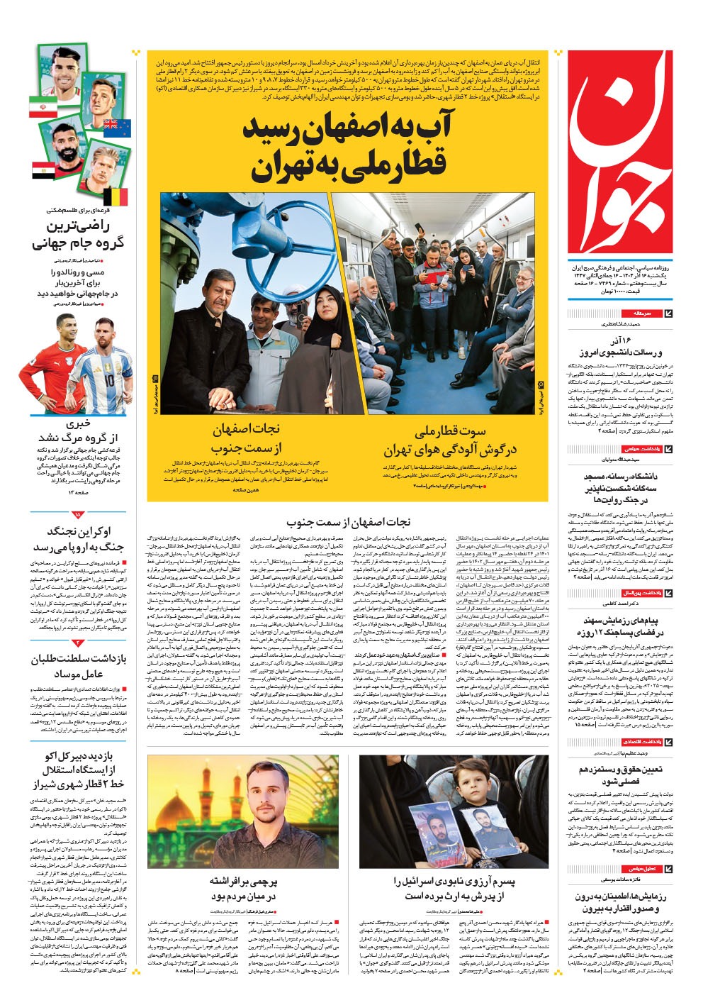 روزنامه جوان - يکشنبه ۱۶ آذر ۱۴۰۴ - شماره ۷۴۶۹