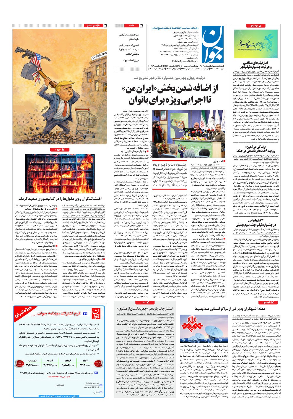 روزنامه جوان - چهارشنبه ۰۱ بهمن ۱۴۰۴ - شماره ۷۵۰۶