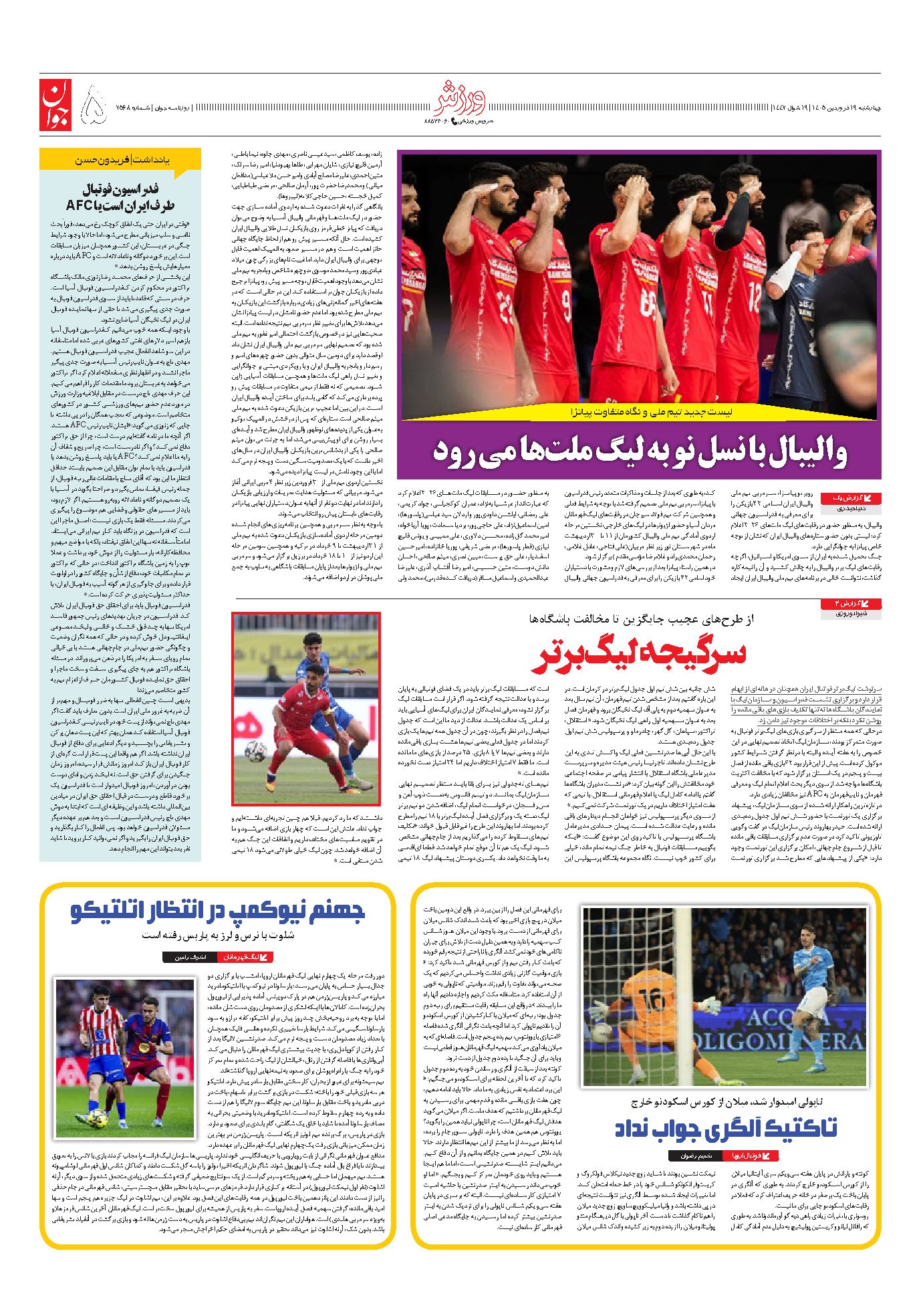 روزنامه جوان - چهارشنبه ۱۹ فروردين ۱۴۰۵ - شماره ۷۵۶۸